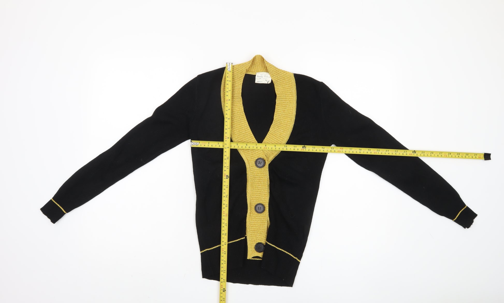 Elevate your wardrobe with this stylish Dorothy Perkins Women's Cardigan in classic black. Crafted for those who appreciate timeless appeal, this piece offers both comfort and versatility, making it an essential addition to any fashion-savvy wardrobe. The cardigan features a chic V-neckline and a contrasting gold trim, which adds a touch of glamour to its minimalist design. It's made from comfortable acrylic material, ensuring you stay cozy while looking fabulous. Perfect for casual outings, this cardigan provides a regular fit and long sleeves, offering warmth and style throughout the year. The button accents add a traditional touch, complementing the overall look. With its regular size type, this cardigan is designed for a flattering fit, enhancing your silhouette effortlessly. Enjoy the confidence of wearing a brand that's renowned for quality and elegance. This item is in very good condition with no visible defects, a testament to its durability and timeless nature. Whether paired with jeans for a casual day out or dressed up with accessories for an evening look, this Dorothy Perkins cardigan promises to be a reliable and fashionable choice season after season.