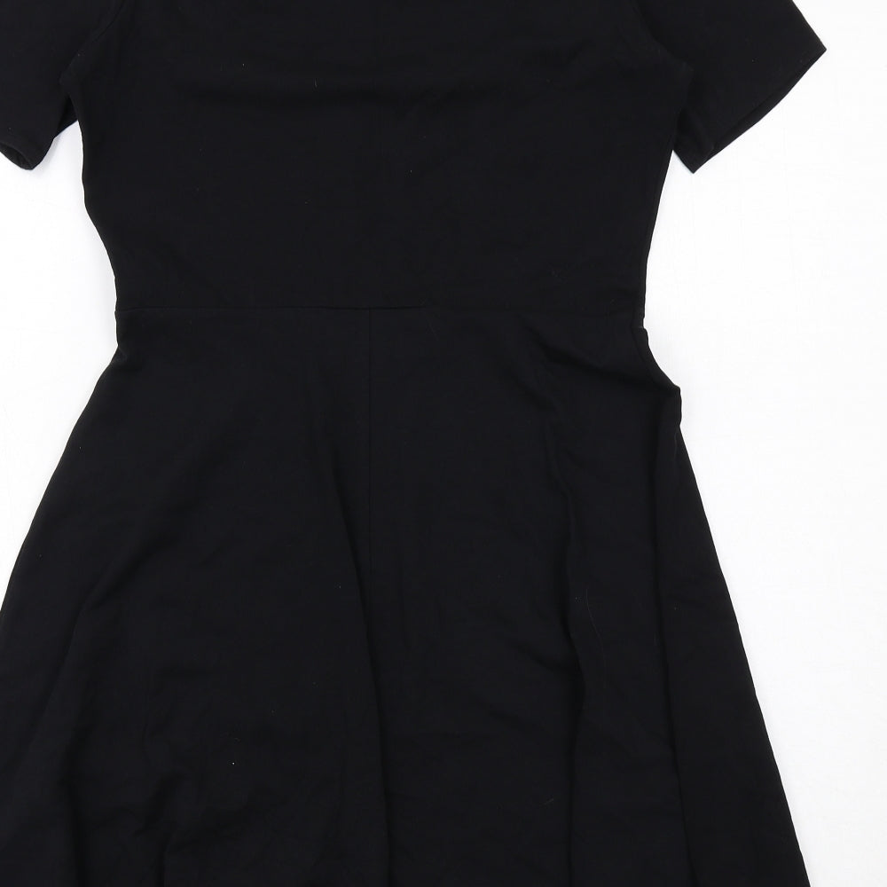 NEXT Womens Black Geometric Polyester A-Line Size 12 Round Neck Button