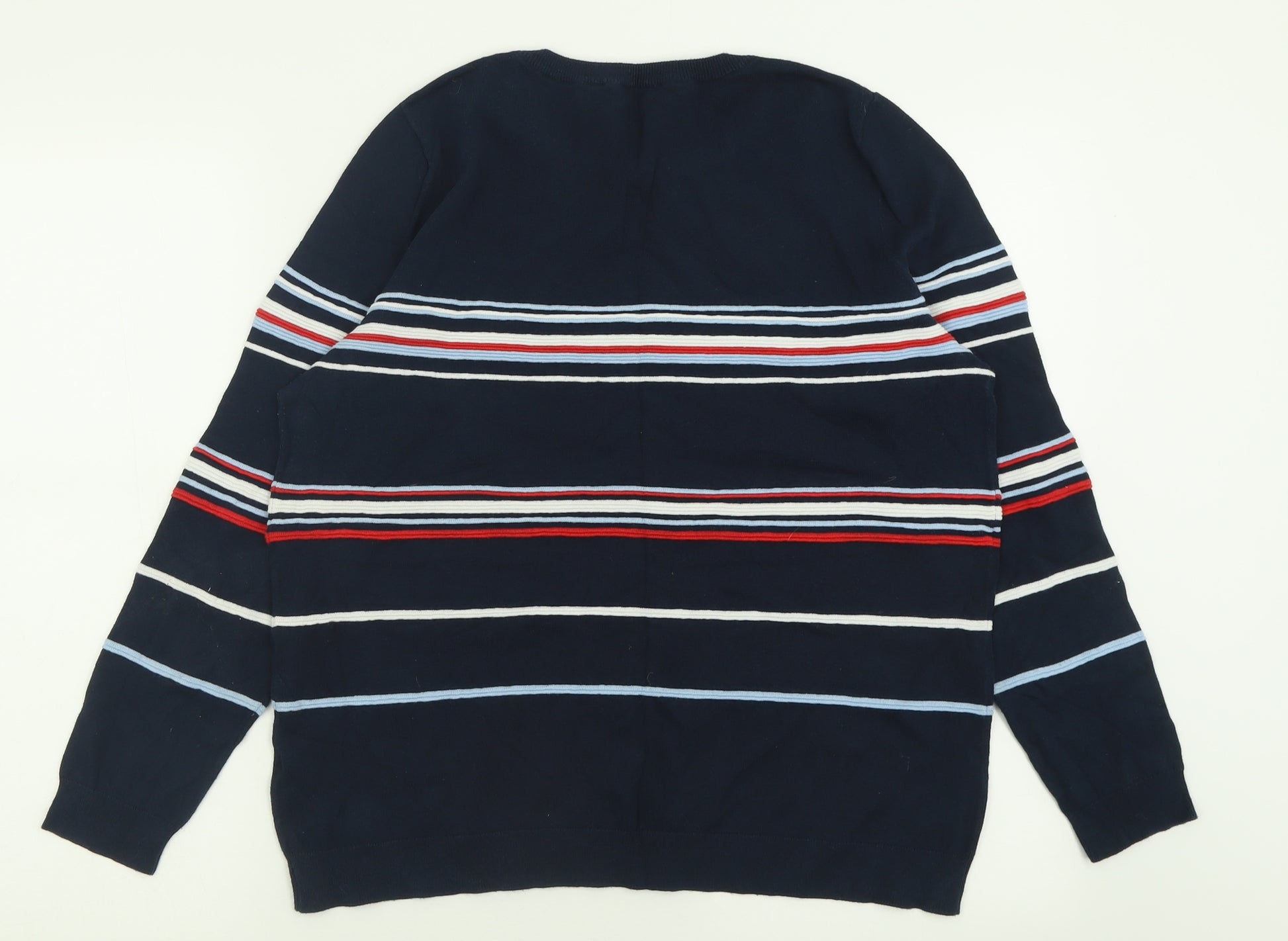 Womens Black Crew Neck Striped Cotton Pullover Jumper Size 16