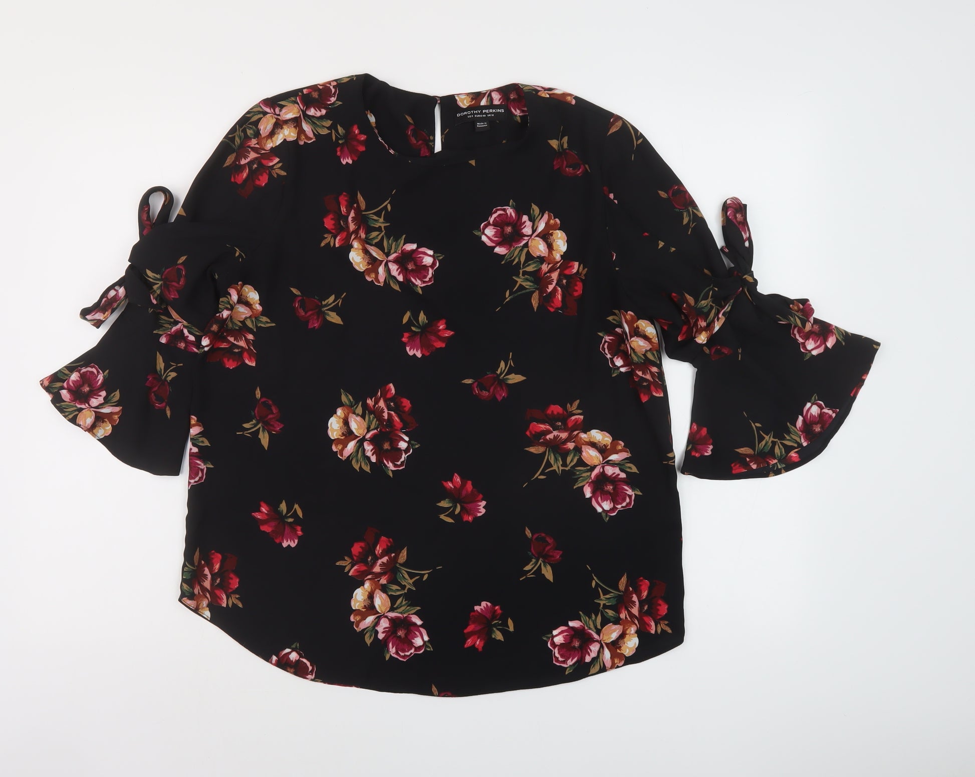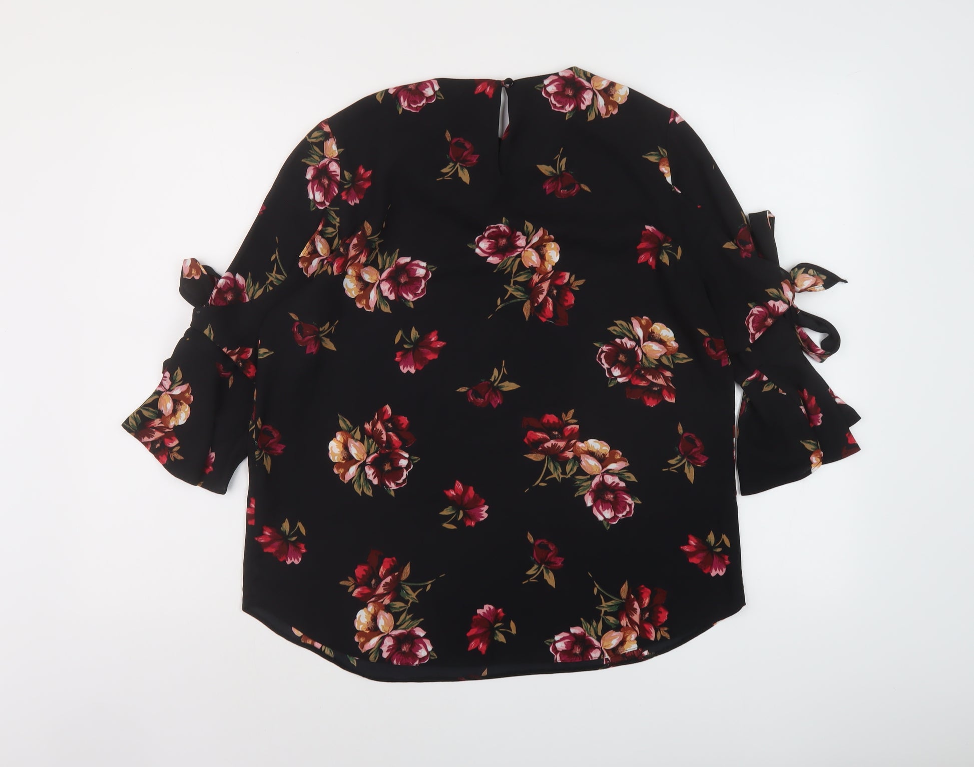 Womens Black Floral Polyester Basic Blouse Size 12 Round Neck