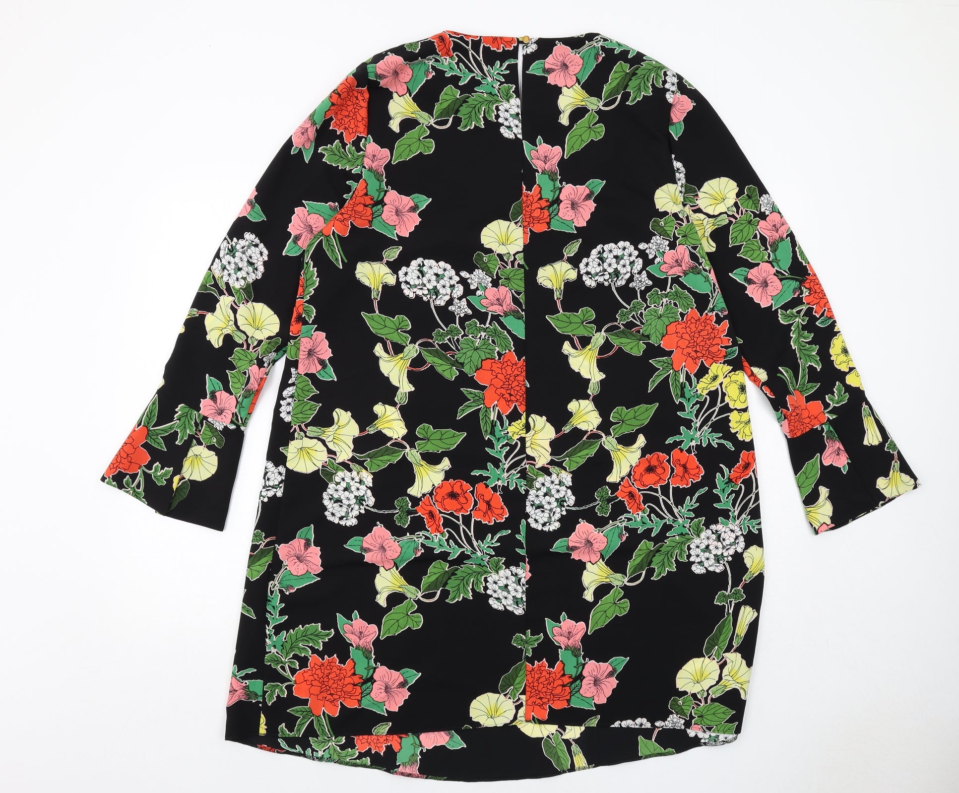 Womens Black Floral Polyester Shift Size 14 Boat Neck Button