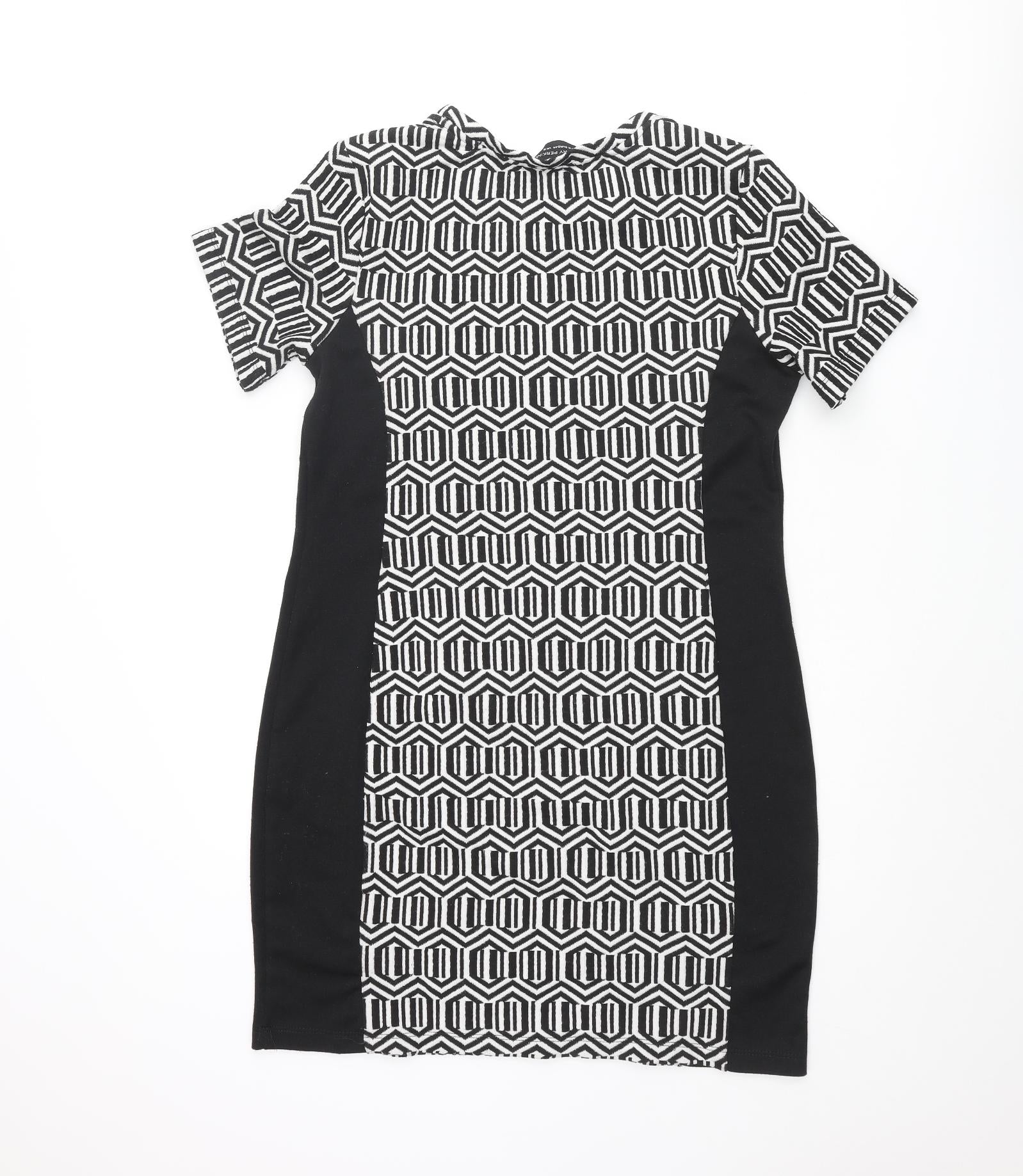 Womens Black Geometric Polyester Shift Size 16 Round Neck Pullover - Panelling Detail
