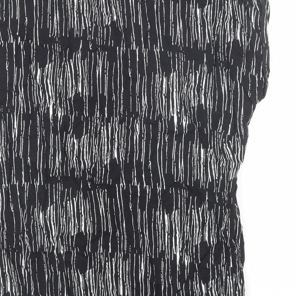 Womens Black Geometric Viscose Basic Blouse Size 14 Round Neck