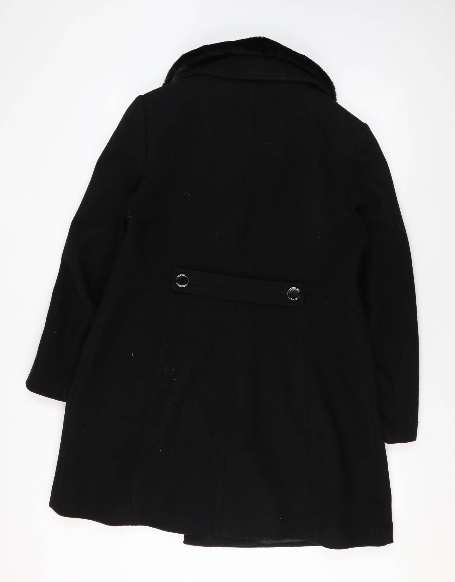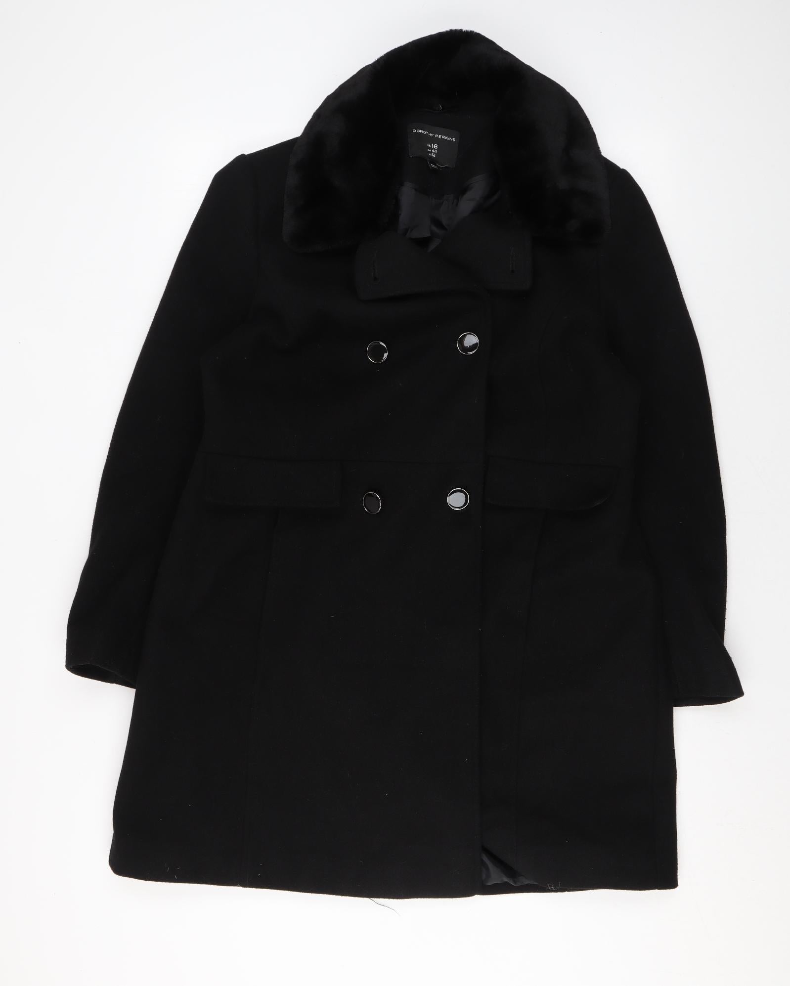 Wallis Women’s Black Long Pea Coat UK 16 Lined Button Classic Style