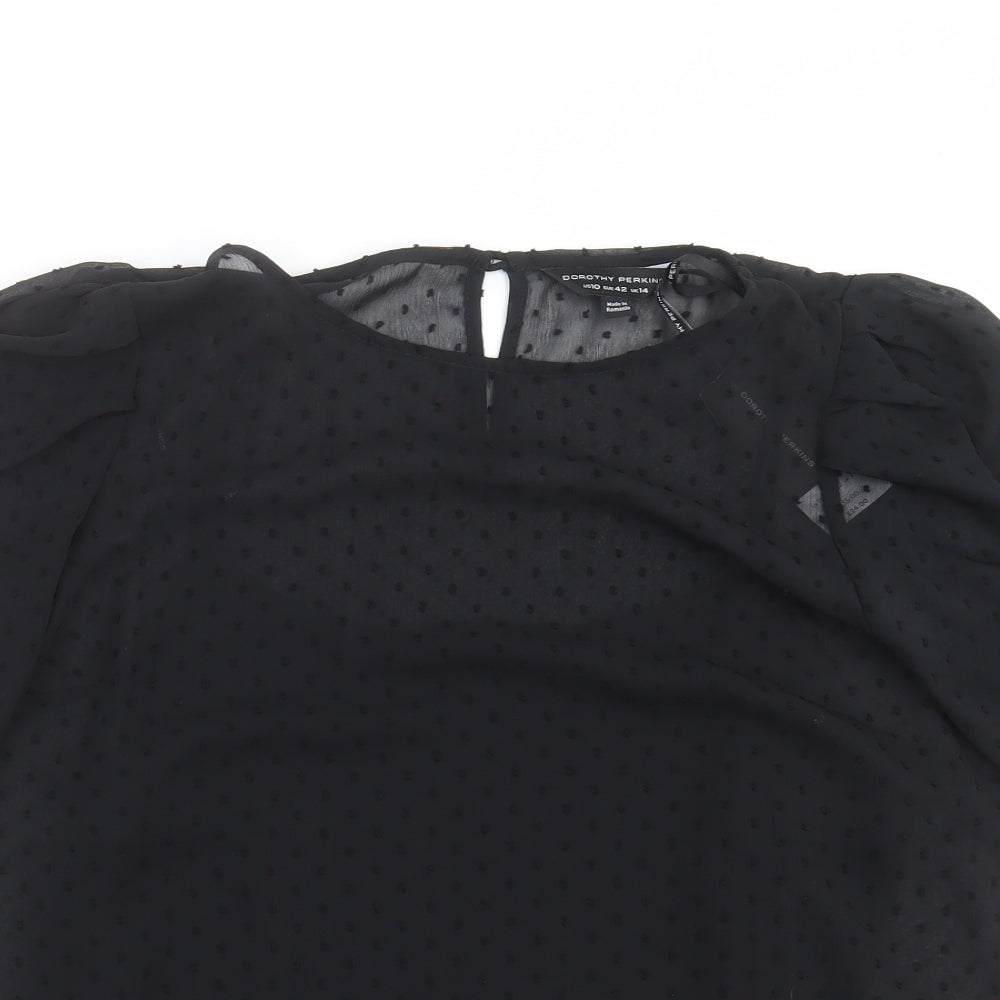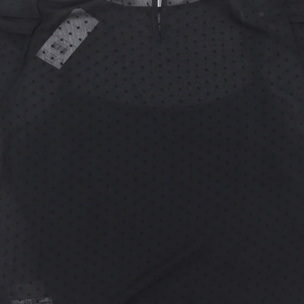 Womens Black Polka Dot Basic Blouse Size 14 - dotted pattern