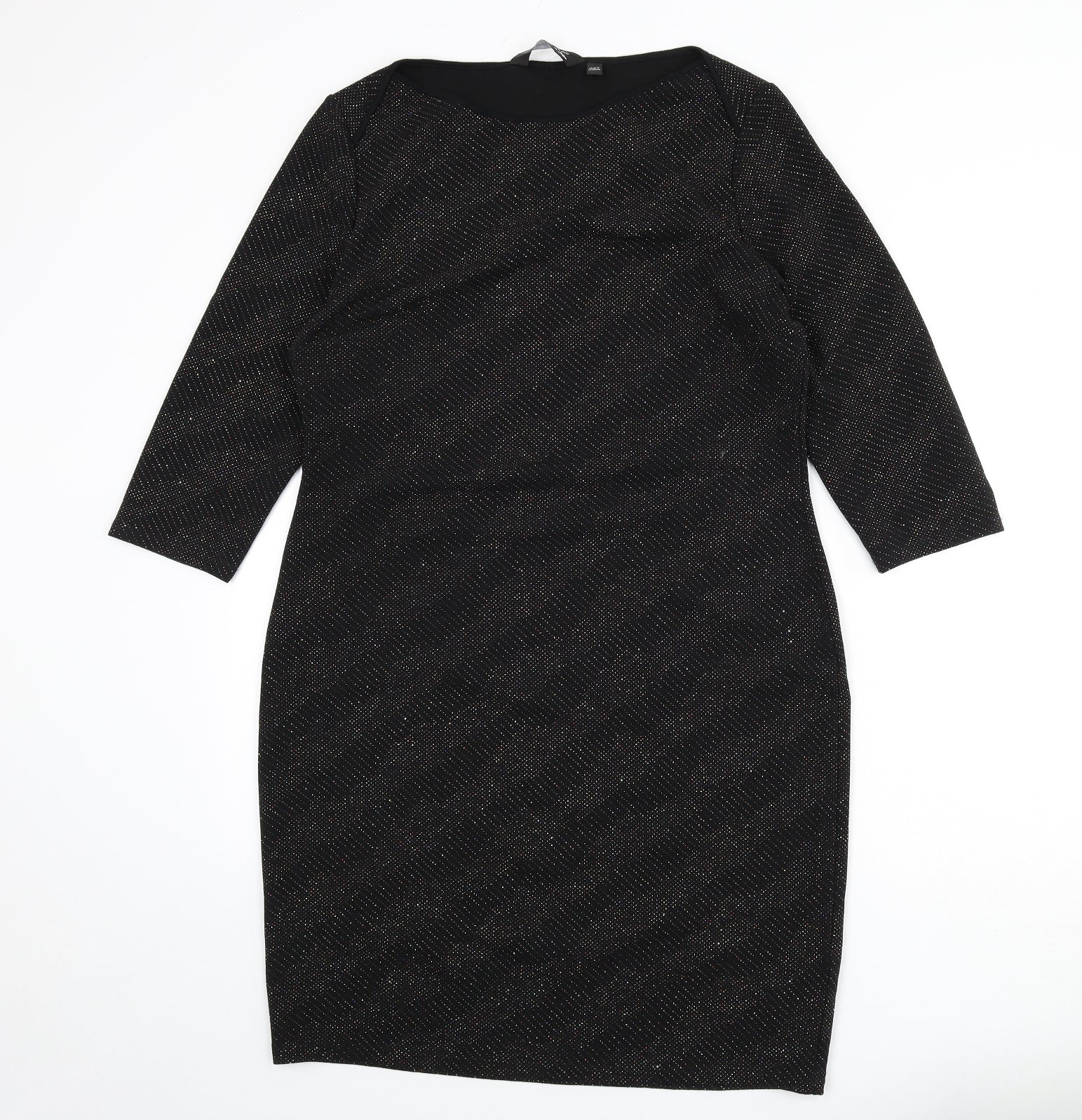 Womens Black Polyester Pencil Dress Size 16 Round Neck Pullover