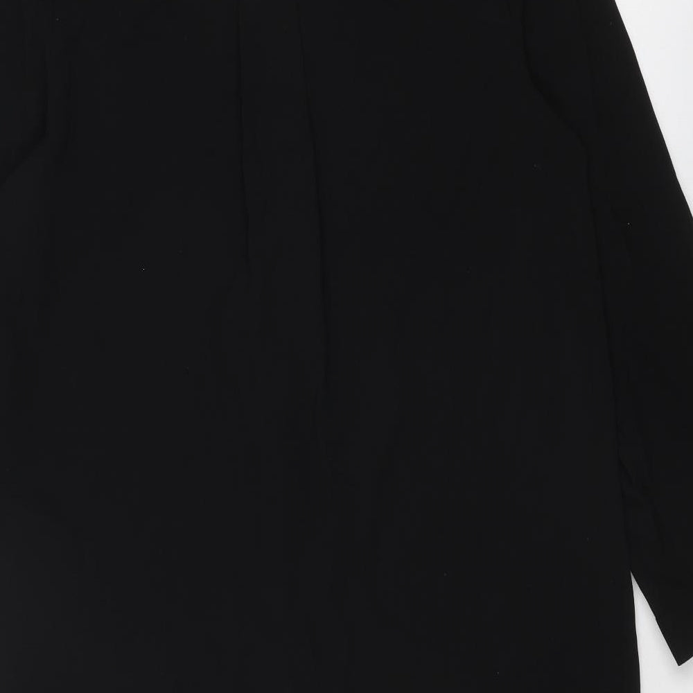 Womens Black Polyester Shirt Dress Size 14 Collared Button