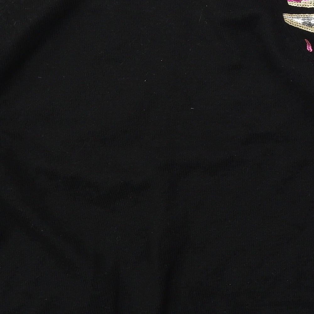 Marks and Spencer Women Black Pearl Beaded Short Sleeve Jumper Size 14