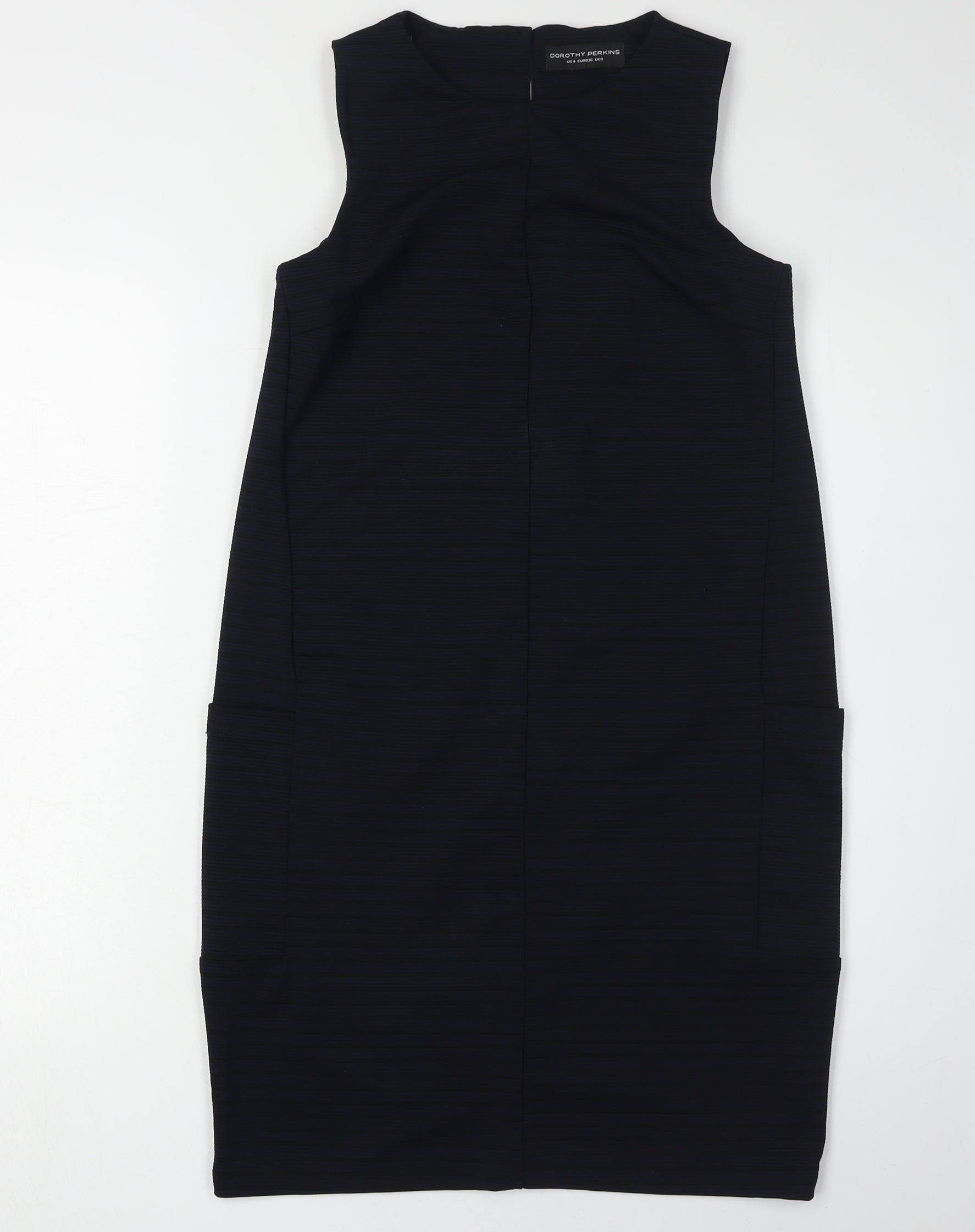 Introducing an essential staple for any woman's wardrobe, this elegant black sleeveless dress from Dorothy Perkins is perfect for effortlessly transitioning from day to night. Tailored to fit seamlessly, this dress is crafted using woven fabric with a material breakdown of 90% polyester and 10% elastane, offering comfort and a slight stretch for a flattering silhouette. Ideal for the modern woman, this dress showcases a chic, minimalist design with a secure zip closure at the back. While it features a sleeveless cut that is perfect for layering or wearing on its own, its classic black hue ensures it remains versatile for any occasion, from casual outings to more formal affairs. The size 8 fit is part of the regular size type, providing a precise fit that complements different body types. Designed to be machine washable for easy care, you can maintain its pristine look with ease. Although this dress comes with no specific pattern, its sleek design speaks volumes in terms of elegance and style. Elevate your wardrobe with this stylish piece that guarantees to be a timeless addition. Whether accessorized with bold jewellery for a party or paired with a blazer and boots for a sophisticated office look, the Dorothy Perkins Women's Black Sleeveless Dress is your go-to piece for refined chic.