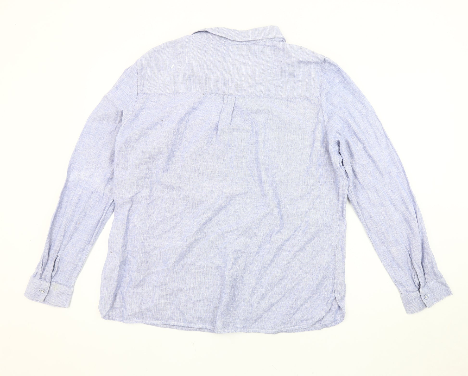 This elegant Dorothy Perkins button-up shirt is a versatile addition to any woman's wardrobe. Crafted from a comfortable blend of 80% cotton and 20% linen, this woven shirt ensures breathability and style. Ideal for casual occasions, its solid blue colour offers a classic look that can easily transition from day to night. The shirt features a collared neckline and long sleeves for a perfect regular fit. With a size 18, this piece is tailored for regular sizing, reflecting a commitment to both comfort and trendiness. While the fabric shows slight signs of wear, the overall condition remains excellent, making it a valuable addition to your collection. Elevate your everyday style with this piece that's both durable and chic. Ideal for pairing with trousers or skirts, it promises to be a staple in your wardrobe this season. Machine washable for your convenience.