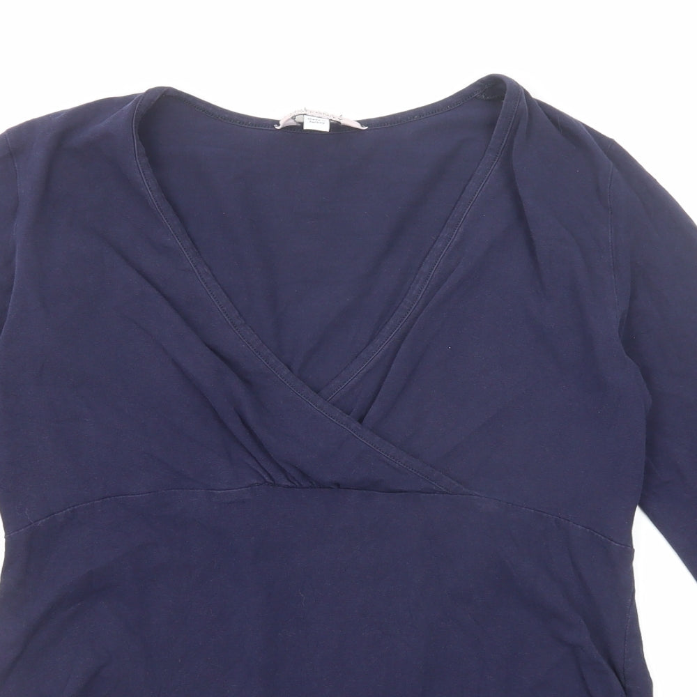 Womens Blue Cotton Basic Blouse Size 12 V-Neck - Wrap Style
