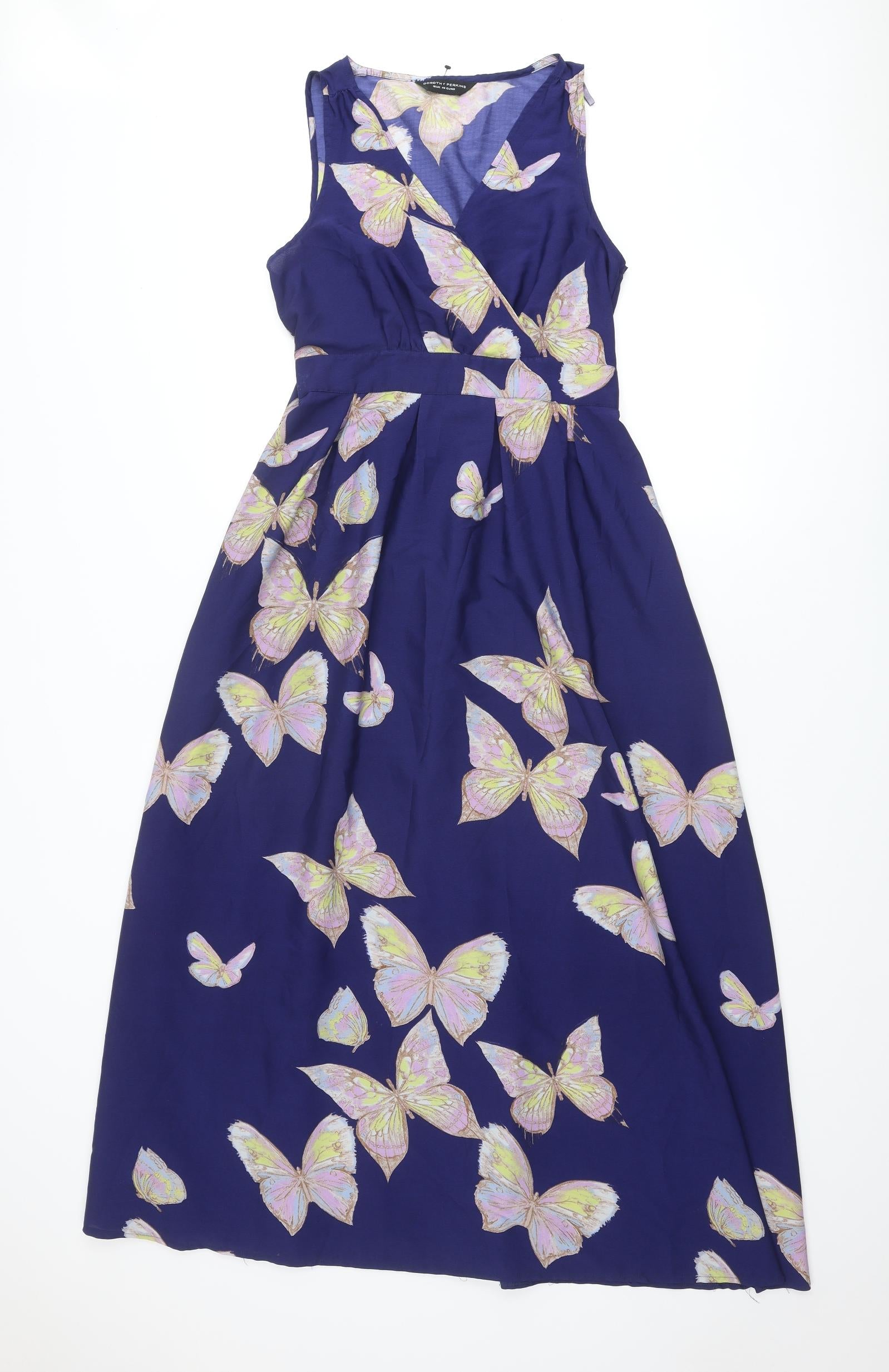 Womens Blue Geometric Polyester A-Line Size 12 V-Neck Pullover - Butterfly Print