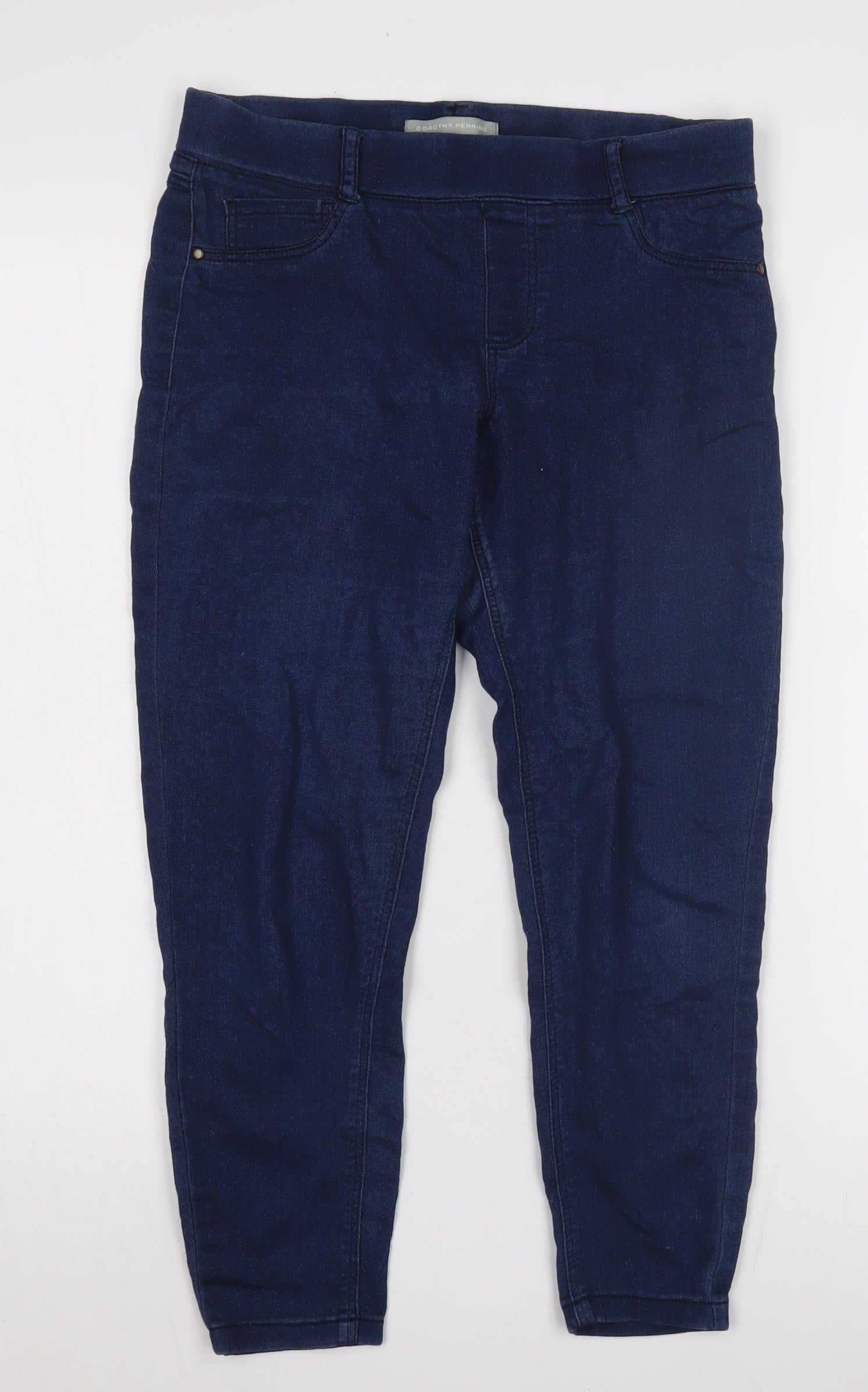 Upgrade your wardrobe with these chic Dorothy Perkins jegging leggings, perfect for casual outings. Designed with a comfortable elastic waist, they offer the stylish look of denim with the comfort of leggings. The rich blue colour enhances their versatility, making them a go-to choice for pairing with various tops. Made from a blend of 68% cotton, 30% polyester, and 2% elastane, these jegging leggings ensure a comfortable fit with enough stretch. They fall under the 'mid-rise' category, making them flattering for various body types. These leggings feature a classic no-pattern design, adding a timeless touch to your collection. The dark wash gives them a sleek appearance, suited for both day and night activities. Whether you're running errands or meeting friends, these leggings fit seamlessly into any casual occasion. The blend of materials ensures they are machine washable, providing ease of care without sacrificing style. With no visible defects, they are in excellent condition, ready to be a staple in your wardrobe. Invest in these Dorothy Perkins blue jegging leggings today and enjoy the fusion of fashion and comfort.