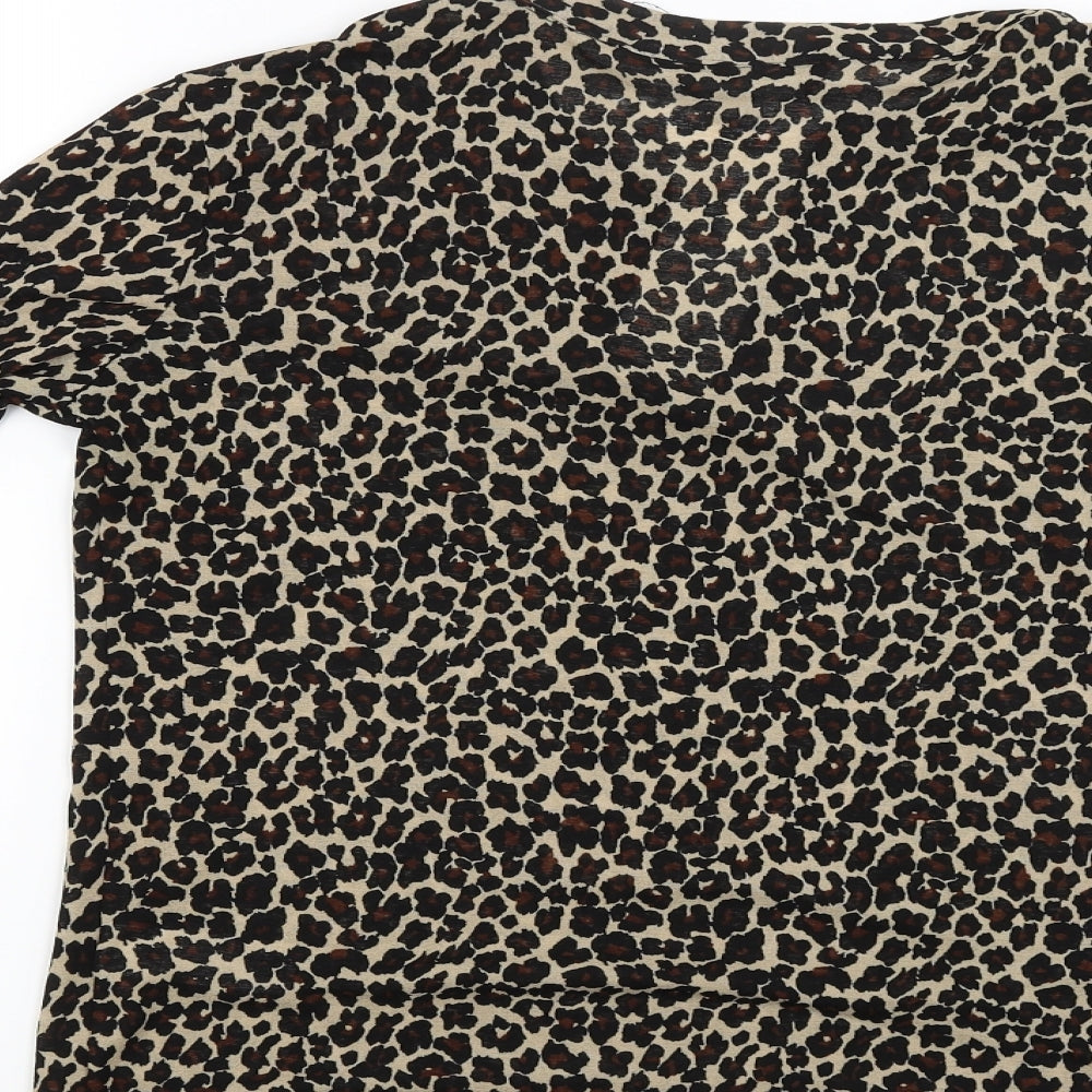 Womens Brown Animal Print Basic Blouse Size 12