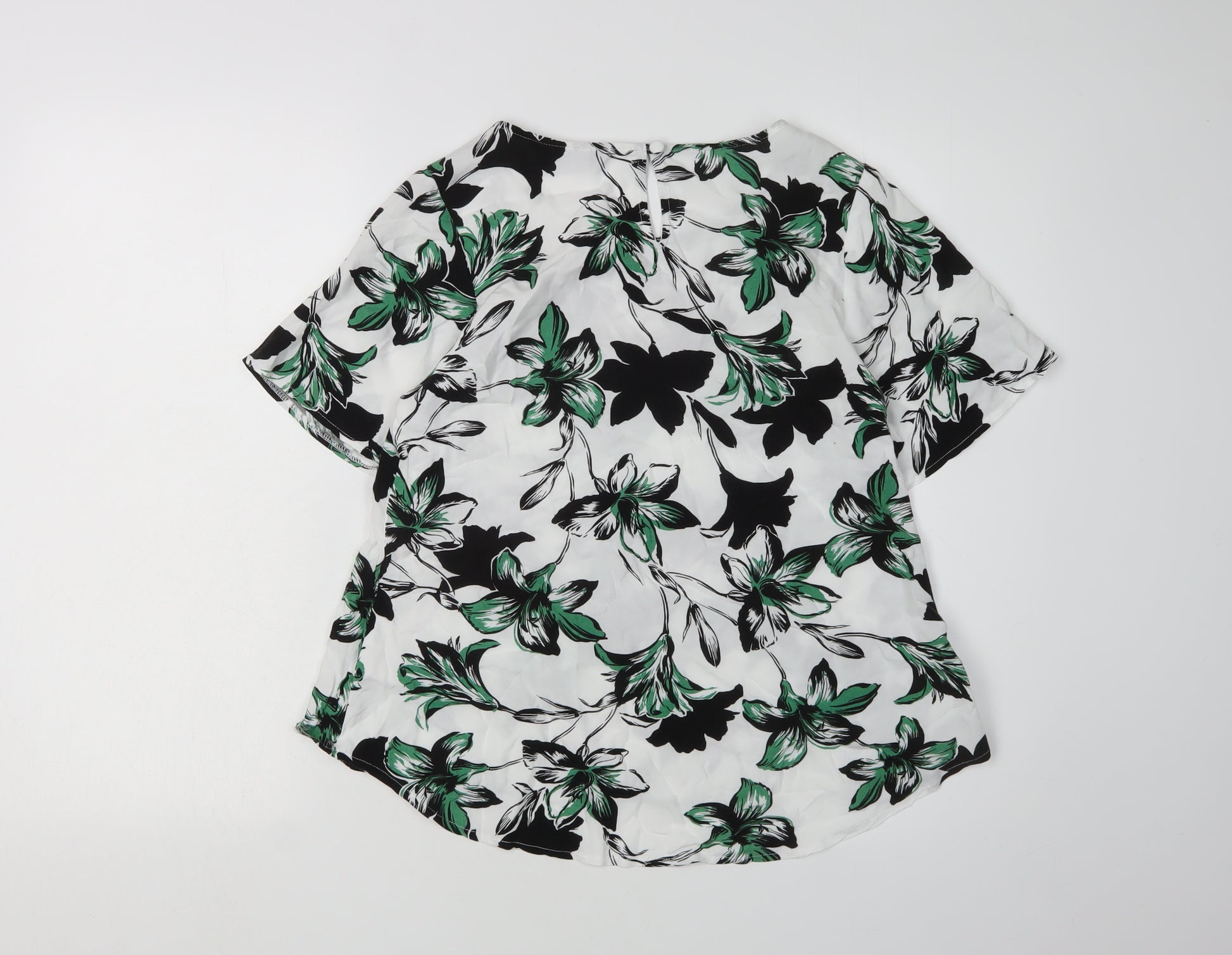 Elevate your wardrobe with this stunning multicoloured floral blouse from Dorothy Perkins. Crafted for women, this blouse showcases a vibrant floral pattern that stands out in any setting. Designed with short sleeves and a comfortable round neck, it offers both style and comfort. Made from 100% viscose, it promises a soft and breathable fit, perfect for various occasions. This versatile piece is suitable for work or casual outings, adding a touch of elegance to your ensemble. Despite slight wear, the blouse remains in very good condition. Enhance your collection with this chic and versatile top, ideal for expressing your unique fashion sense. Perfect for pairing with jeans or skirts, this blouse offers endless styling possibilities.