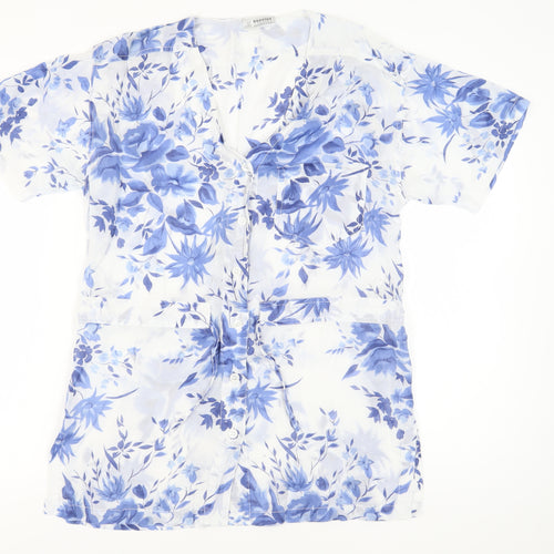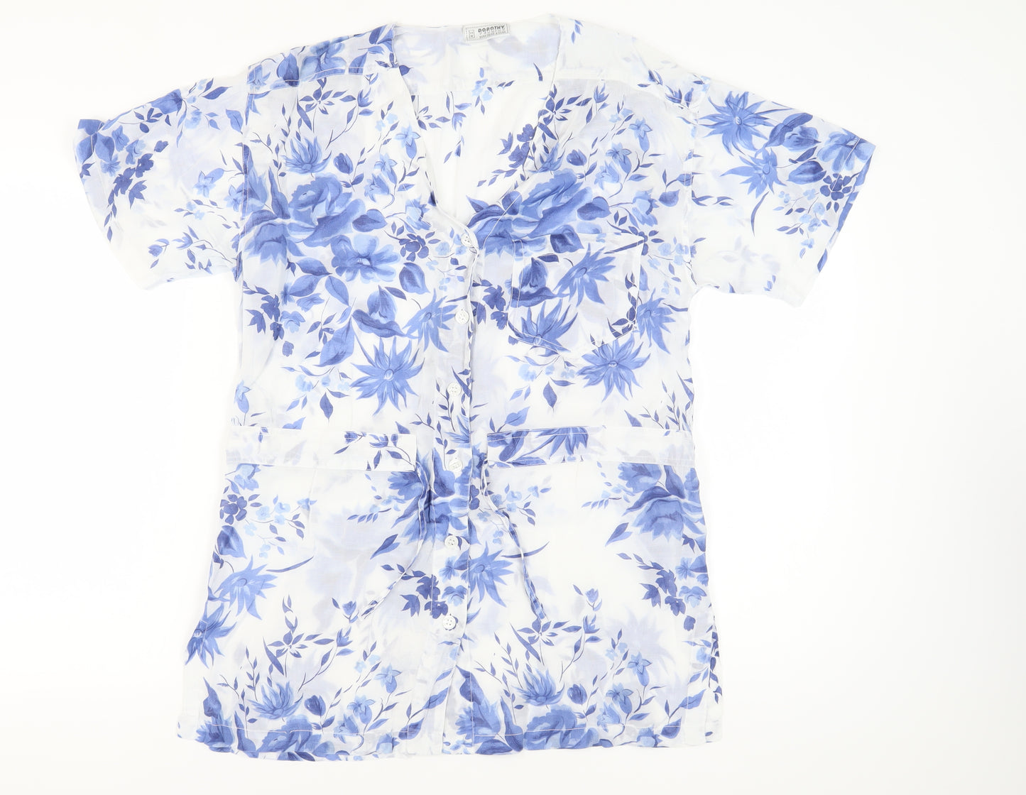 Enhance your wardrobe with this exquisite floral blouse from Dorothy Perkins, perfect for adding a touch of elegance to your everyday style. Crafted for women, this blouse is designed in a classic and comfortably fitting M size, ensuring ease and style for various body types. The blouse boasts a multicoloured floral pattern that is visually striking and perfect for the spring and summer seasons. Constructed from a quality blend of viscose and cotton, it promises a soft, lightweight feel that's great for all-day wear.Featuring a stylish V-neckline and short, classic sleeves, this blouse is both fashionable and functional, making it an ideal choice for casual occasions. The button accents add a trendy touch, while the button closure provides convenience and a secure fit. While it lacks many adornments, its simplicity is its strength, ensuring it can be paired with a variety of skirts, trousers, or shorts.Despite its excellent preloved condition, this blouse shows no visible signs of wear, maintaining its charm and freshness. It is machine washable for easy garment care, making it a practical addition to any fashion collection. Whether you're heading out for a relaxed day with friends or simply enjoying a sunny day in the park, this floral blouse will keep you looking chic and comfortable.Don't miss the opportunity to own this versatile and stunning blouse. Whether styled with jeans for a casual look or dressed up with tailored trousers, this blouse is a must-have for those who appreciate effortless fashion. Elevate your wardrobe with the timeless appeal of Dorothy Perkins.