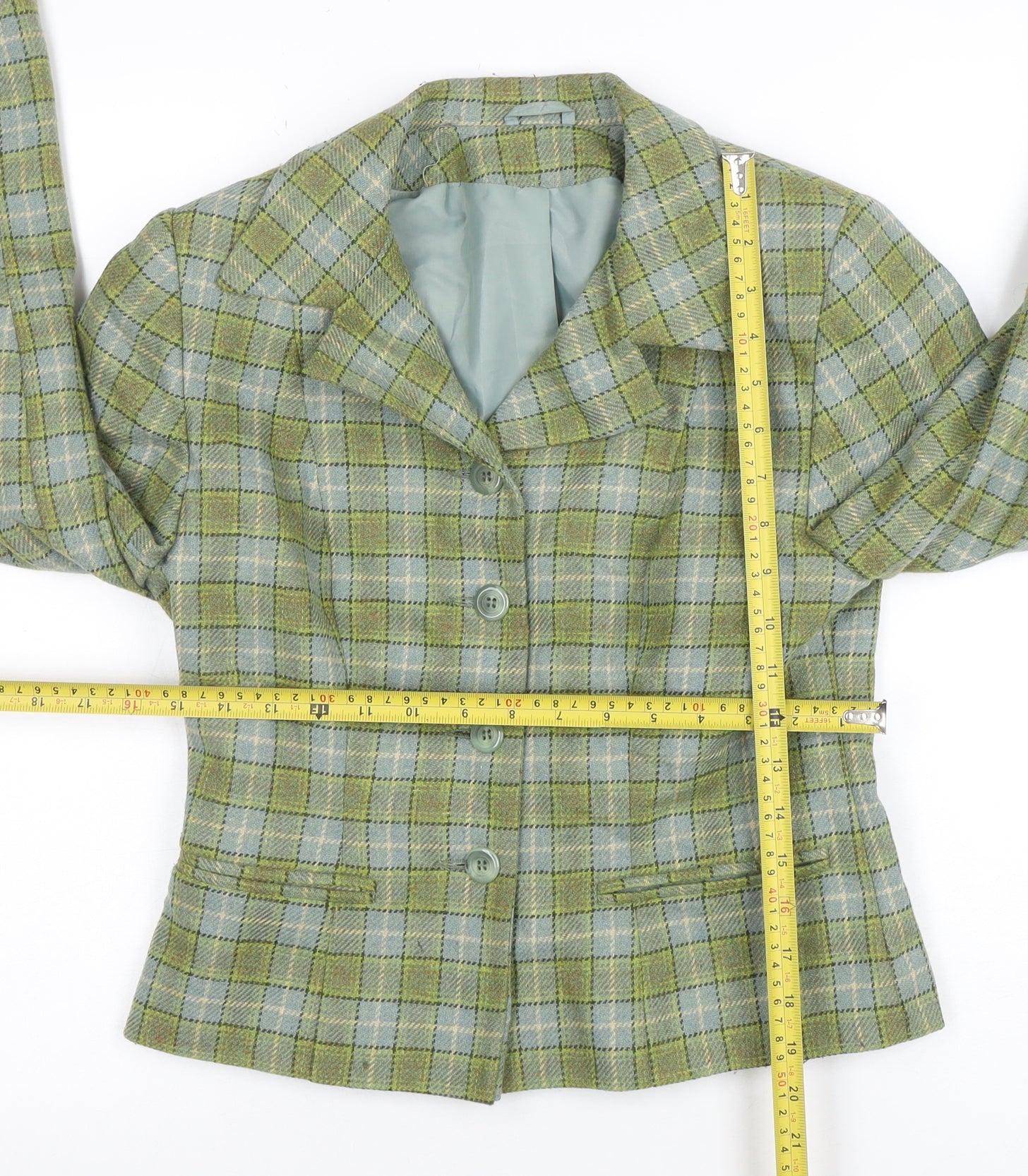 Cerruti 1881 Women's Green Check Wool Blazer Size 10 Classic Fit