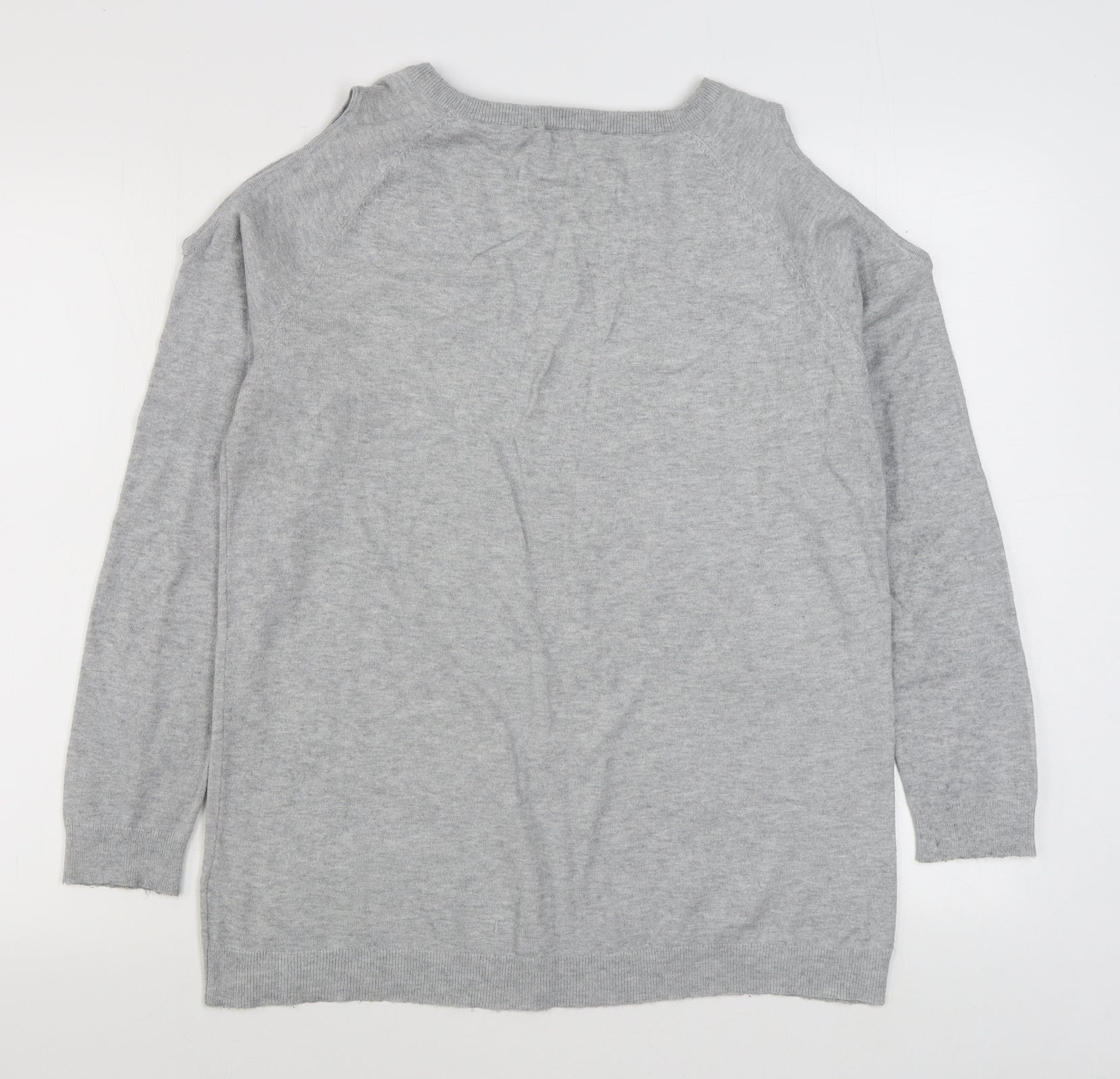 Womens Grey Round Neck Viscose Pullover Jumper Size 16