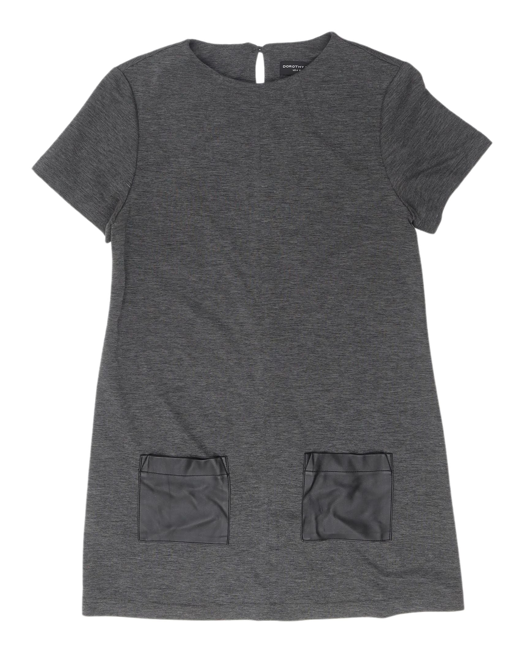 This exquisite grey shift dress from Dorothy Perkins is a charming addition to any wardrobe. Featuring a minimalistic shift style, this dress is designed for women who appreciate clean lines and effortless elegance. With its short sleeves and round neckline, this dress provides a classic look while remaining versatile for various occasions. The dress is crafted from a high-quality jersey fabric, composed of 77% polyester, 19% viscose, and 4% elastane, ensuring a comfortable fit while maintaining its structure and shape. Practical features include stylish front pockets and a button closure at the back, adding subtle detailing to this simple yet chic piece. Its neutral grey colour makes it a timeless choice that can easily be paired with a variety of accessories, while the wrinkle-resistant fabric ensures easy maintenance, keeping it looking fresh for longer. Ideal for casual outings or a day at the office, this dress is machine washable, offering both convenience and style. In excellent condition, with no visible wear or defects, this dress is ready to become a staple in your collection. Grab this sophisticated Dorothy Perkins shift dress today and experience the effortless grace and enduring quality it has to offer.