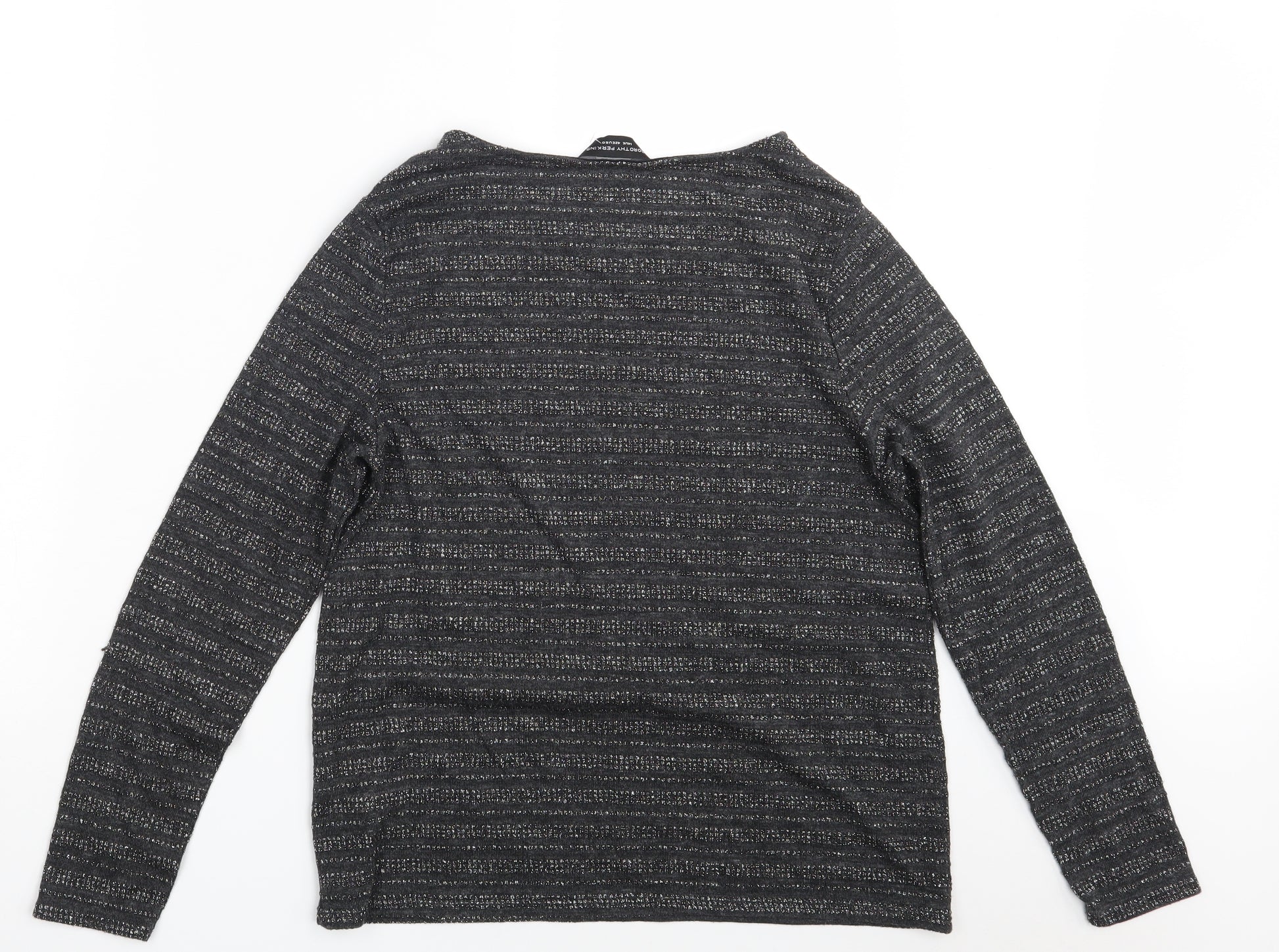 Womens Grey Striped Pullover Sweatshirt Size 14