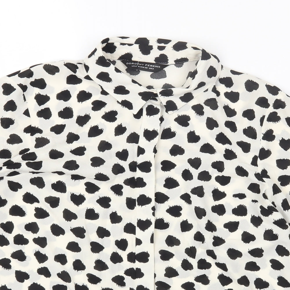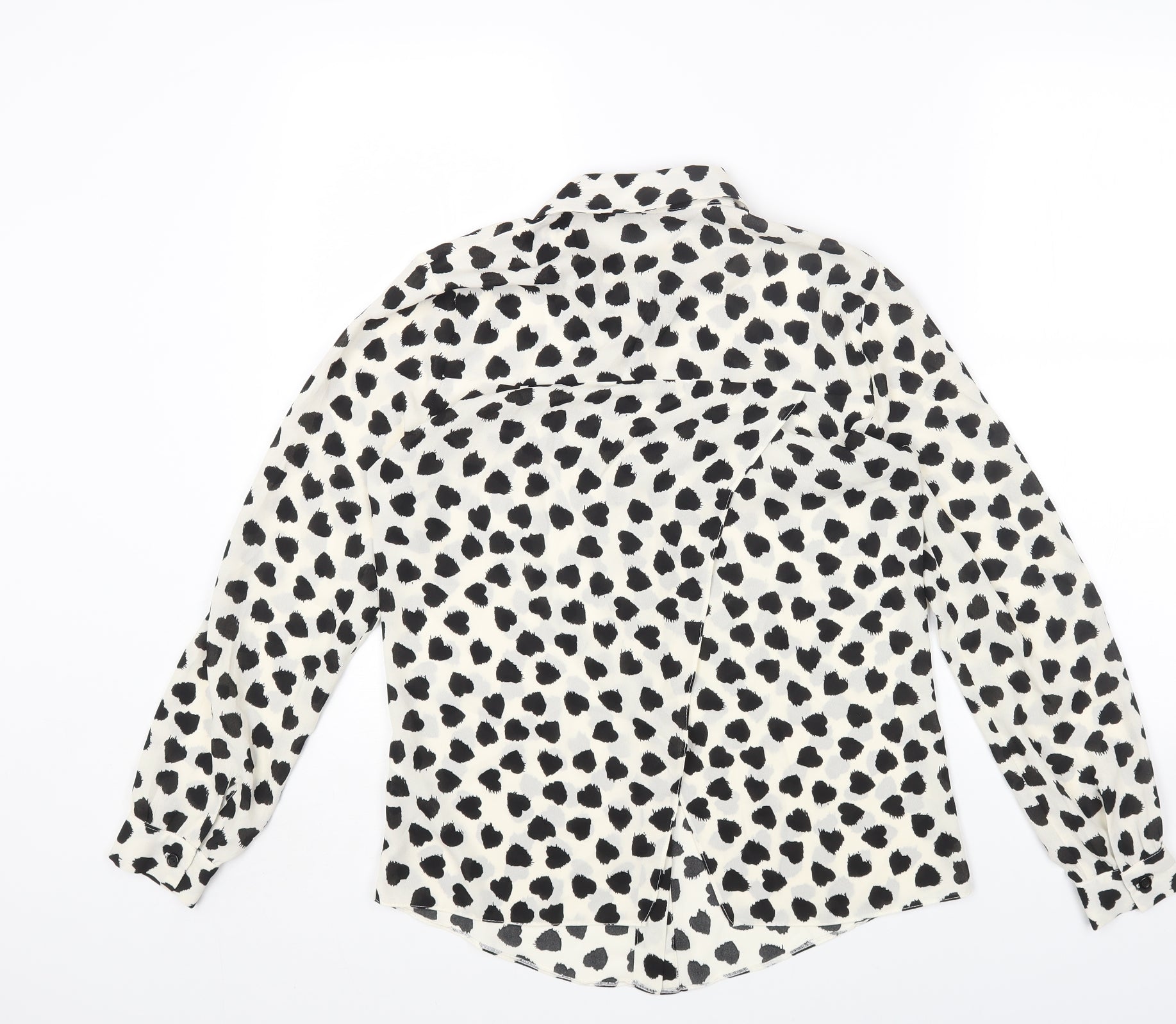 Womens Ivory Geometric Polyester Basic Blouse Size 8 Collared