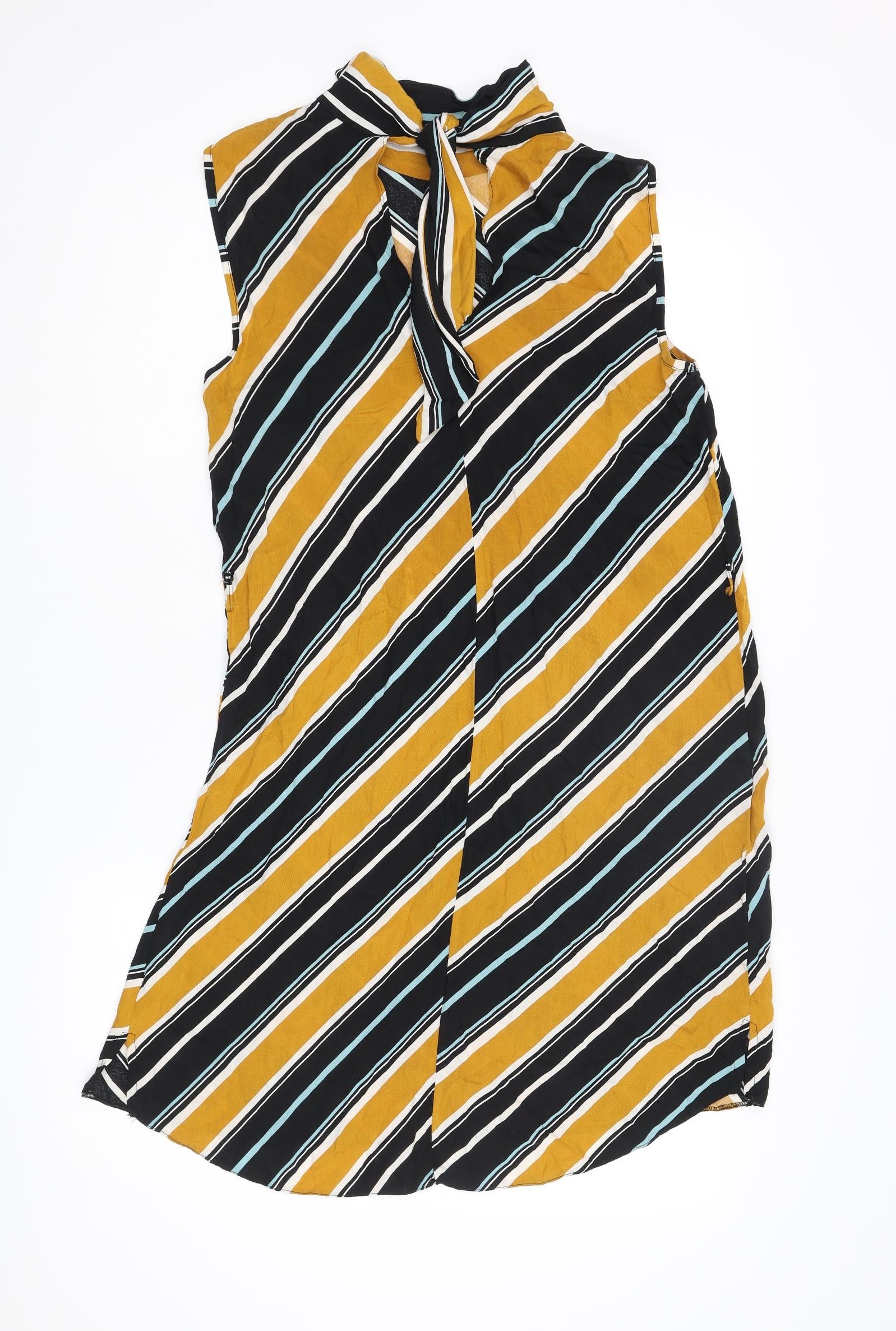 Womens Multicoloured Striped Viscose Shift Size 10 Mock Neck Tie