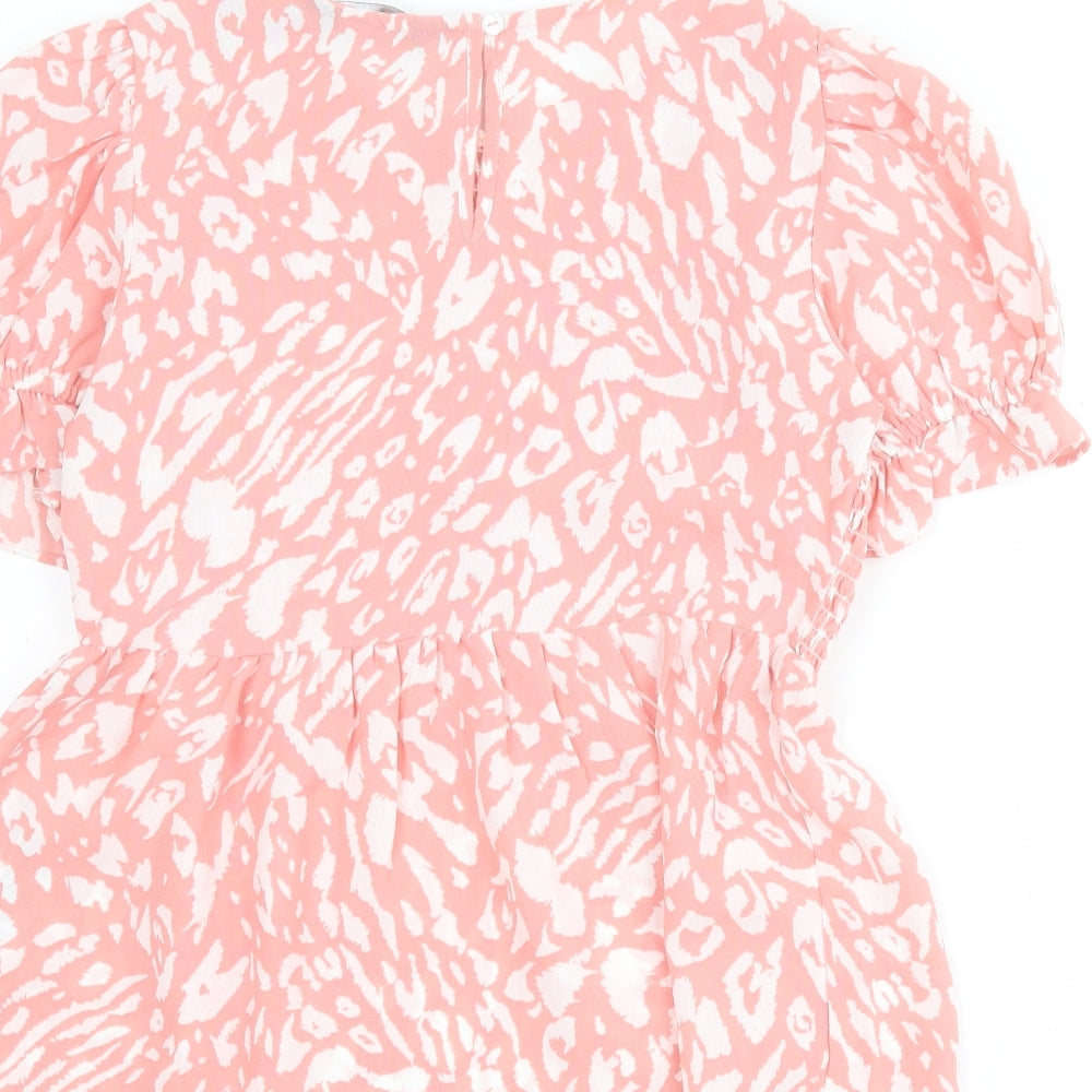 Womens Pink Animal Print Polyester Basic Blouse Size 12 Round Neck