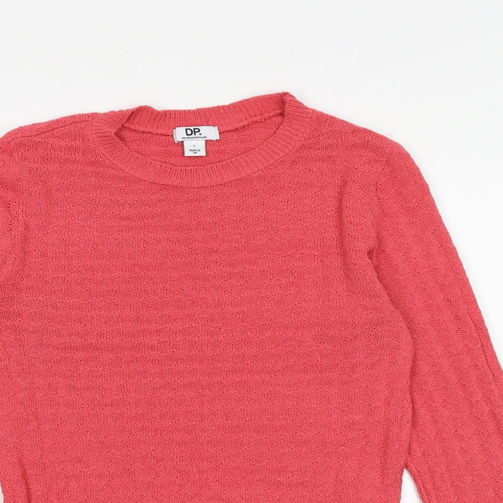 Womens Pink Round Neck Cotton Pullover Jumper Size S
