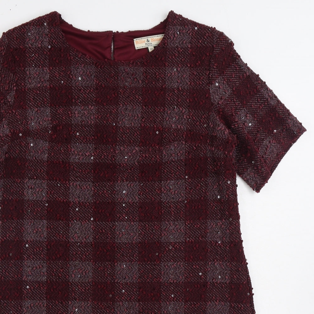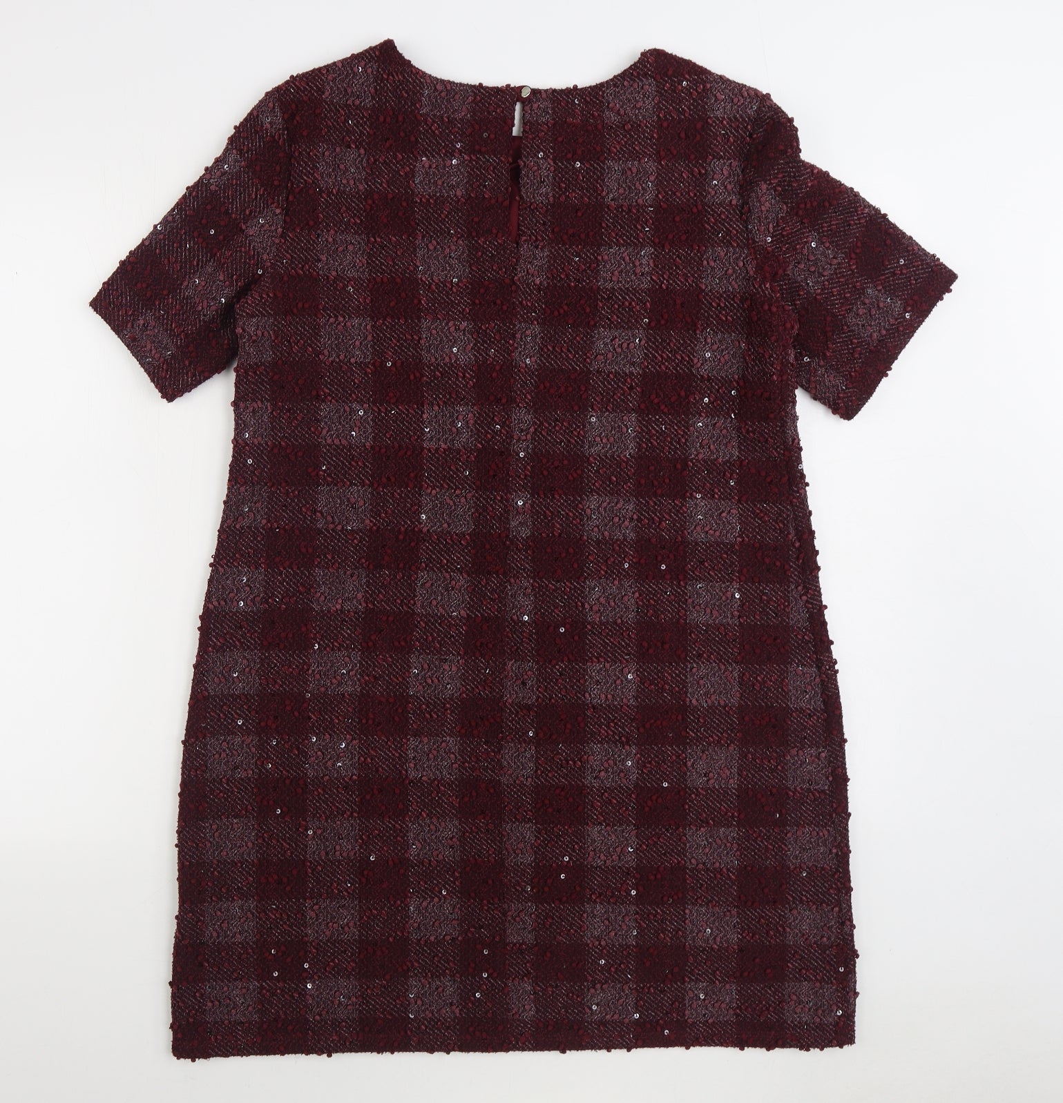 Womens Purple Gingham Polyester Sheath Size 14 Boat Neck Button