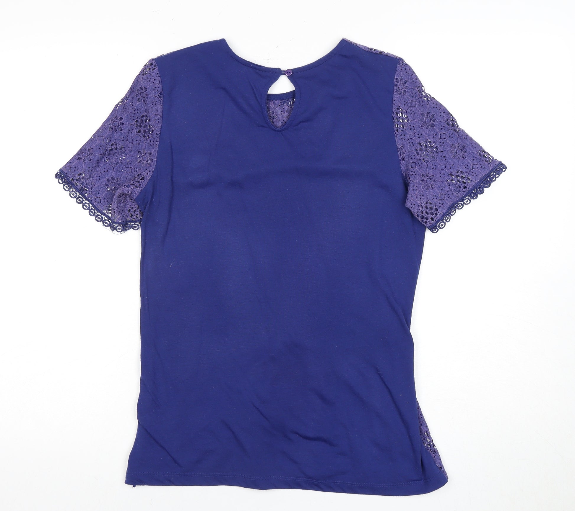 Step up your wardrobe game with this elegant Dorothy Perkins purple blouse. Crafted with a lovely floral lace design, this top effortlessly combines style and comfort. Made from a premium blend of cotton, nylon, and elastane, it ensures both breathability and a snug fit, perfect for day-long wear. With a chic short sleeve and a sophisticated crew neckline featuring a delicate keyhole detail, this blouse adds a touch of elegance to any outfit.Designed for the fashion-forward woman, its regular fit makes it versatile for casual gatherings or a chic day out. The rich purple hue brings a pop of colour to your ensemble, making it a standout piece in any wardrobe. Machine washable for easy care, you'll keep it looking fresh with minimal effort. Pair with jeans for a laid-back look or dress it up with a skirt for a sophisticated appearance. This blouse is a must-have staple that seamlessly transitions from season to season.