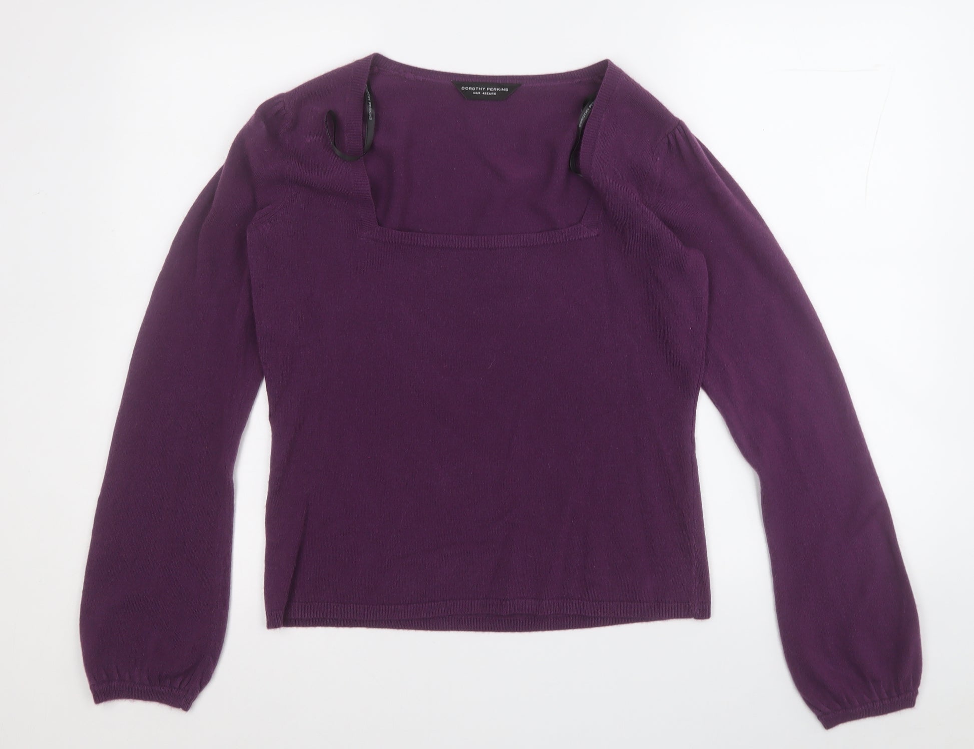Womens Purple Square Neck Acrylic Pullover Jumper Size 14