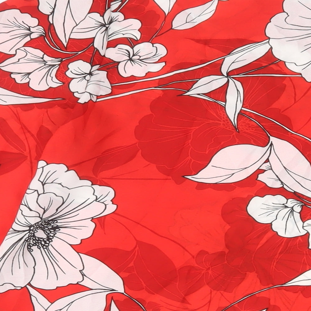 Womens Red Floral Polyester Basic Blouse Size 12 Boat Neck