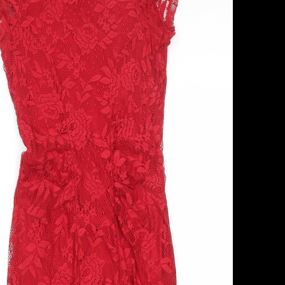 Womens Red Floral Polyester Shift Size 6 Round Neck Zip