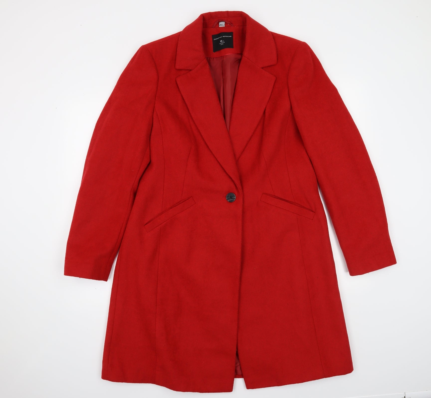 Topshop Women Red Wool Blend Military Coat Size 16 Long Double-Breasted