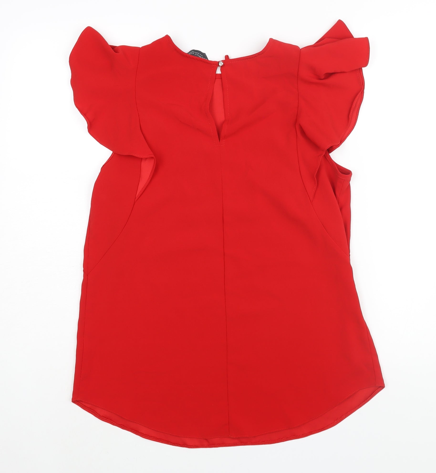 Womens Red Polyester Basic Blouse Size 12 Round Neck - Frill