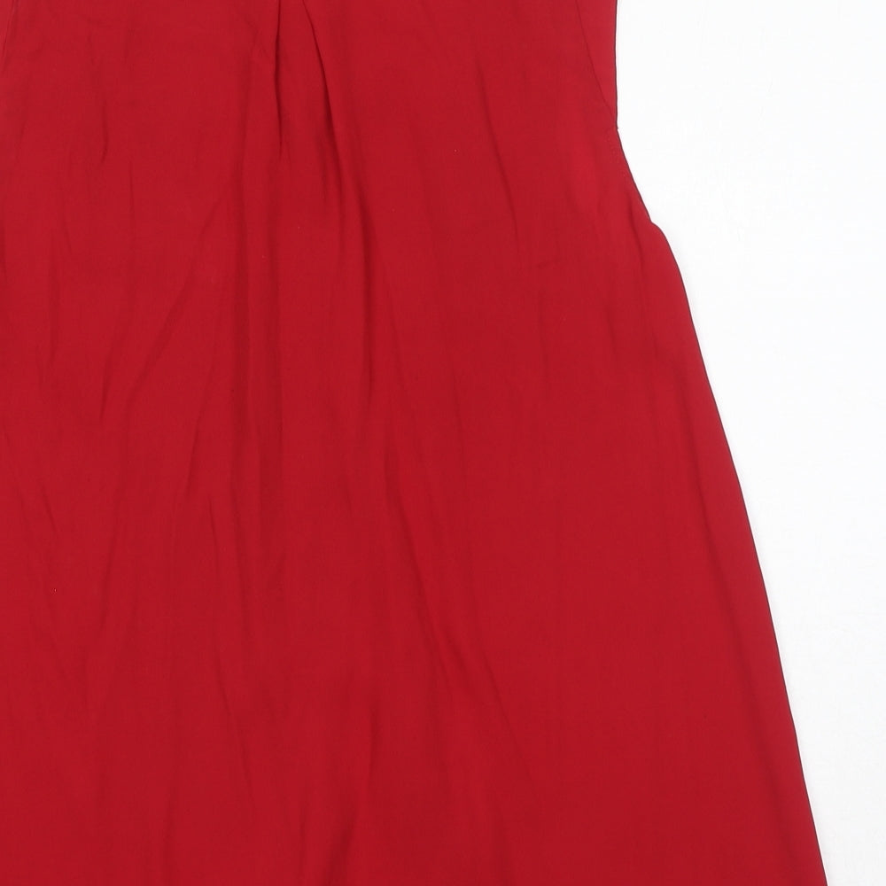 Womens Red Polyester Basic Button-Up Size 12 Collared