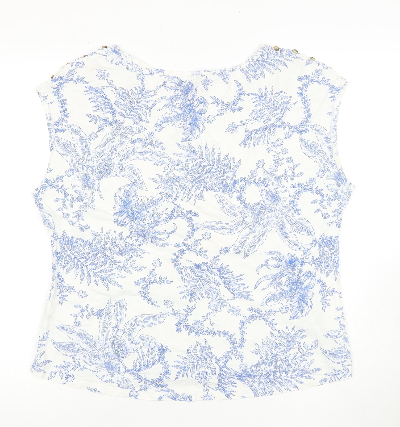 Elevate your casual wardrobe with this exquisite Dorothy Perkins Women's Sleeveless Floral Blouse, perfectly sized at 14. Offering the ideal combination of comfort and style, this charming blouse is crafted from a luxurious blend of cotton and viscose, ensuring softness and breathability throughout the day. The classic V-neckline elegantly complements its sophisticated floral design, making it a versatile piece for day-to-night wear. Accentuated by delicate button details on the shoulders, this blouse exudes an effortless grace that can be effortlessly incorporated into any outfit. Machine washable for easy care, this blouse is designed for convenience and durability. Its white hue serves as the perfect backdrop for the intricate blue floral pattern, adding a touch of elegance to any ensemble. Ideal for various casual occasions, whether you're heading to a brunch, a day in the park, or a casual outing with friends, this blouse ensures you stand out with its unique charm. The sleeveless design allows for ease of movement and can be layered under jackets or cardigans for a polished look. Experience the blend of form and function with this lovely blouse, promising to be a staple in your wardrobe for seasons to come.
