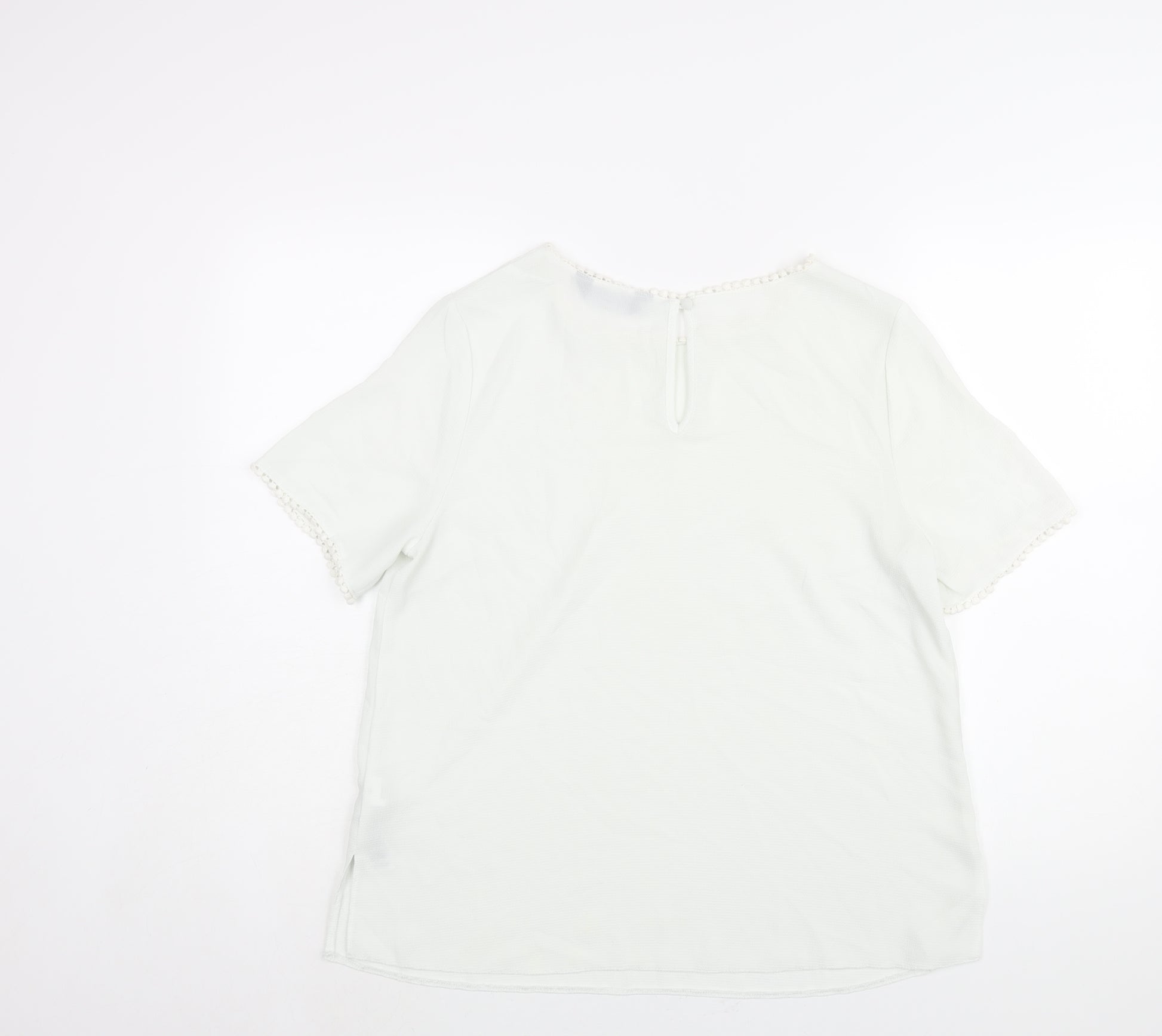 Womens White Polyester Basic Blouse Size 14 Round Neck
