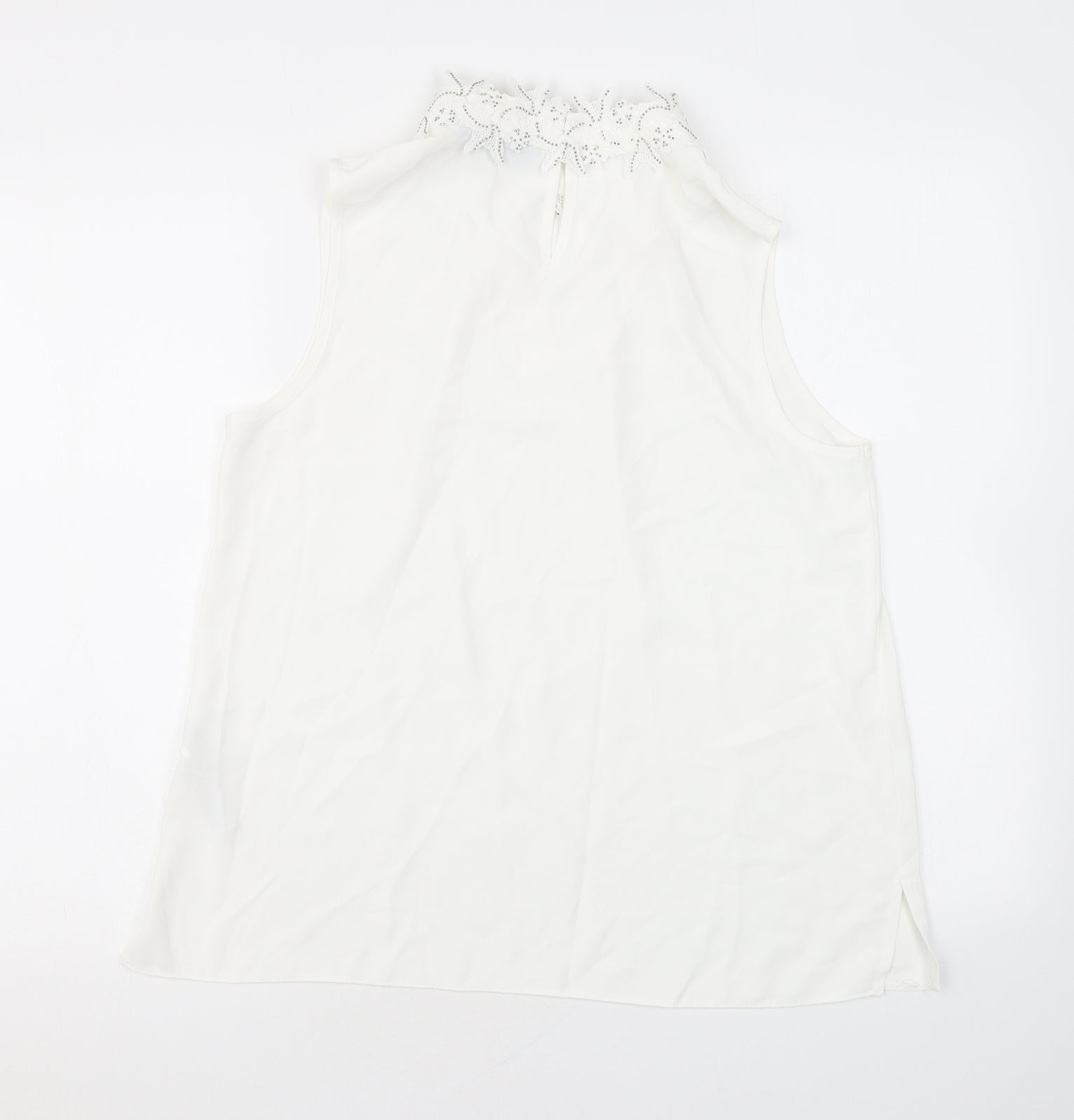 Womens White Polyester Basic Tank Size 14 Mock Neck - Embroidery