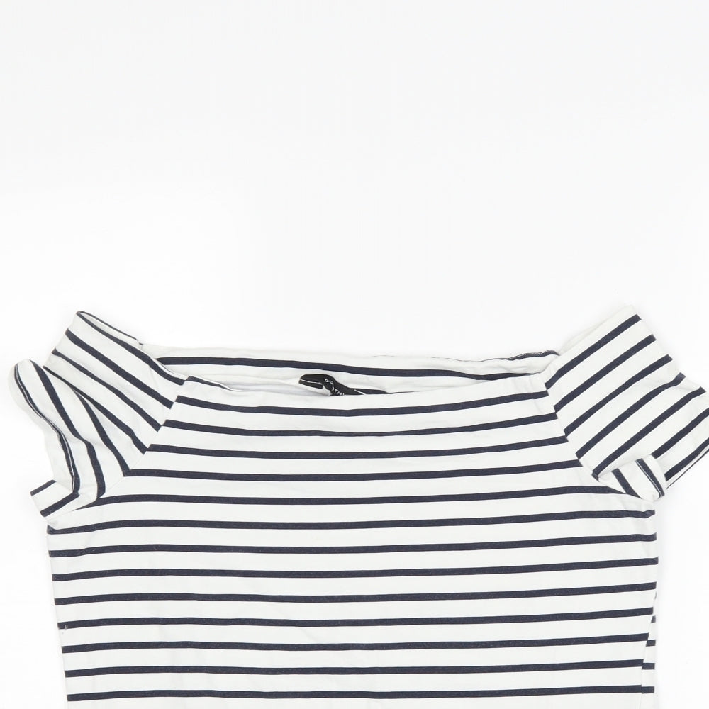 Miss Selfridge Women’s White Striped Cropped T-Shirt Size 14