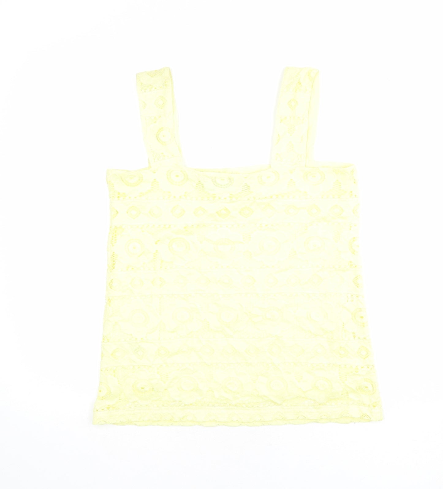 Womens Yellow Floral Polyester Basic Tank Size 12 Square Neck