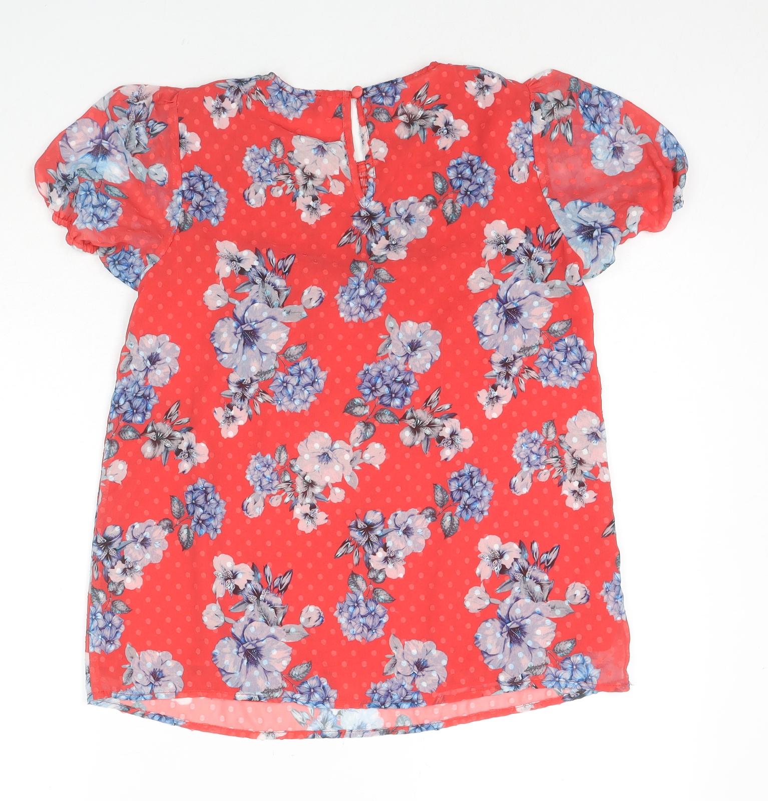 Womens Red Polka Dot Polyester Basic Blouse Size 8 Round Neck - Flowers