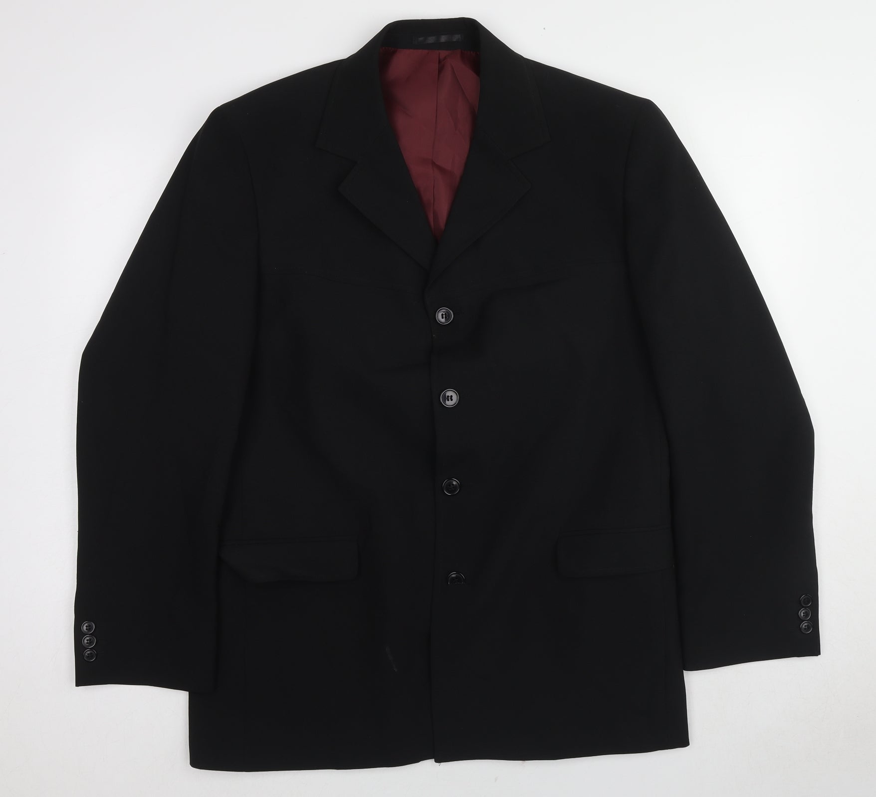 Mens Black Polyester Jacket Suit Jacket Size 40 Regular