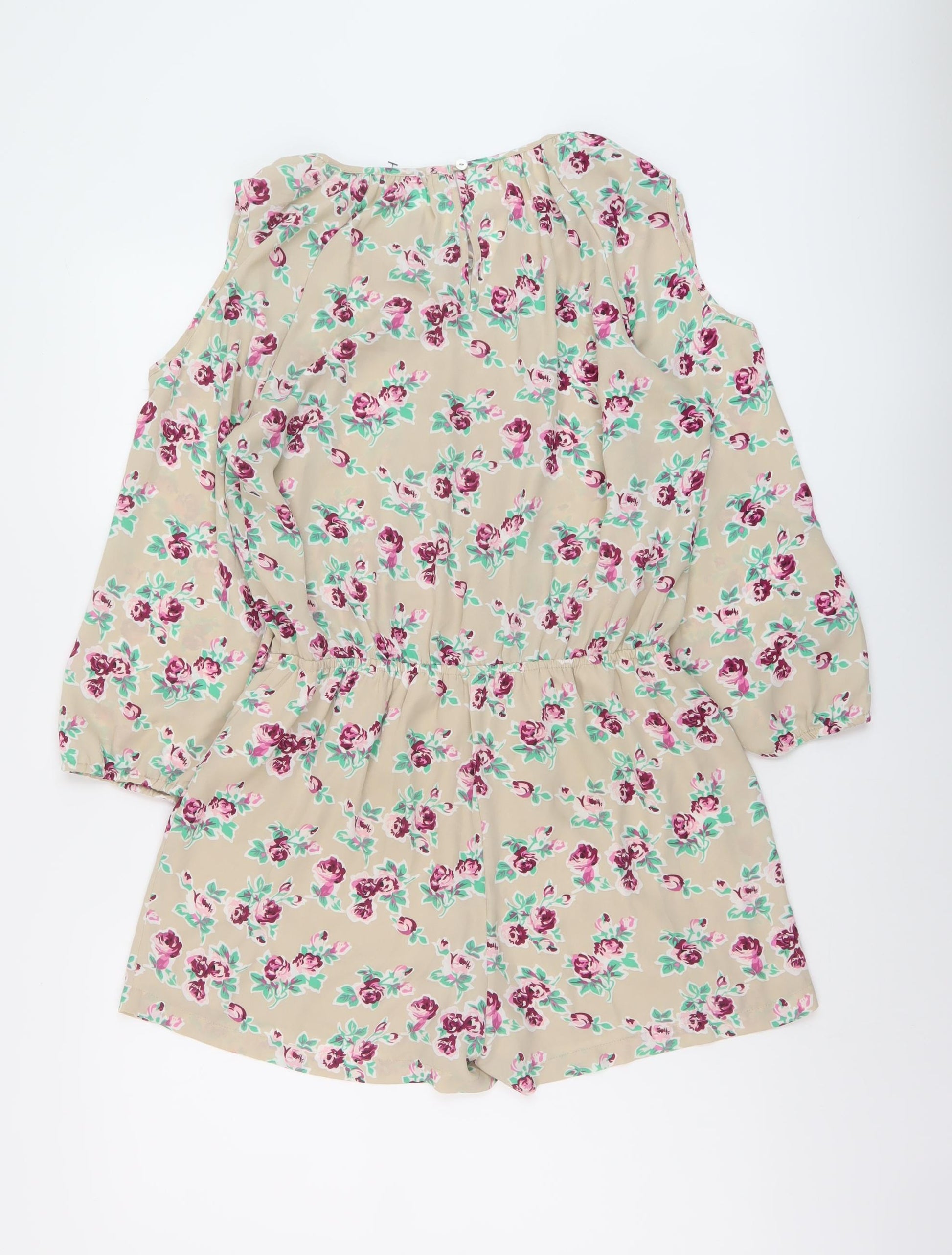Womens Beige Floral Polyester Playsuit One-Piece Size M Tie