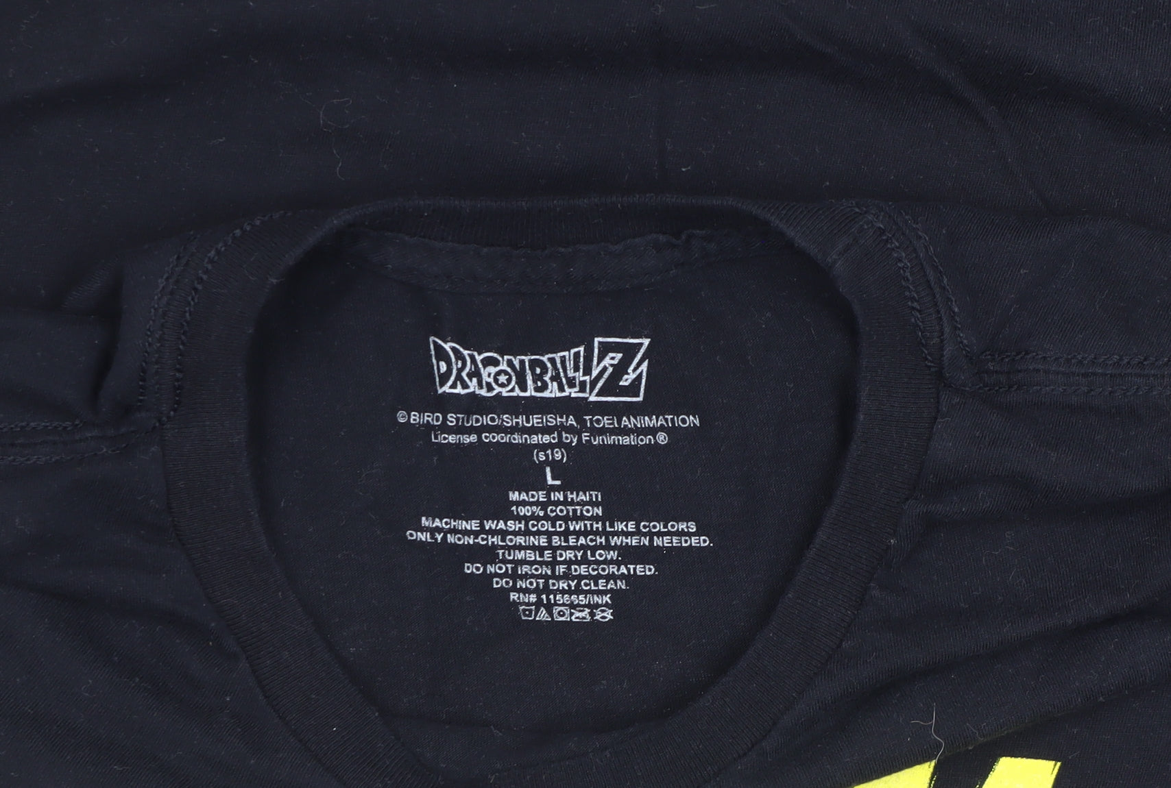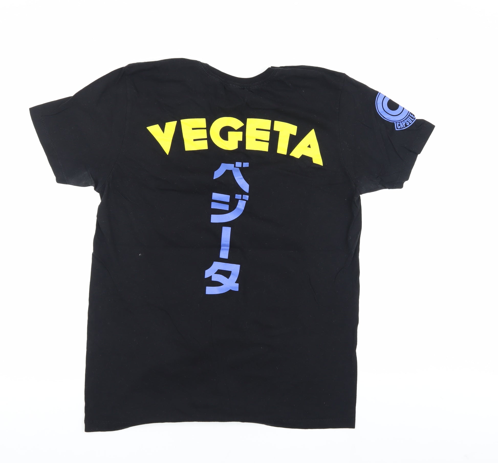 Show off your love for Dragon Ball Z with this striking Vegeta T-shirt, perfect for any anime enthusiast. Made from comfortable and breathable 100% cotton jersey, this tee offers both style and comfort. The bold graphic print on the front features Vegeta in all his glory, surrounded by vibrant energy. Ideal for casual wear, this T-shirt is great for men, teens, and unisex adults who want to express their fandom. The black colour and crew neck design add a classic touch, making it easy to pair with any outfit. Whether you're lounging at home or out for a day with friends, this Dragon Ball Z T-shirt is a fantastic choice. Great for all seasons, the shirt is machine washable for easy care. Despite showing some light wear, it remains in excellent condition. Don't miss your chance to add this iconic piece to your wardrobe!