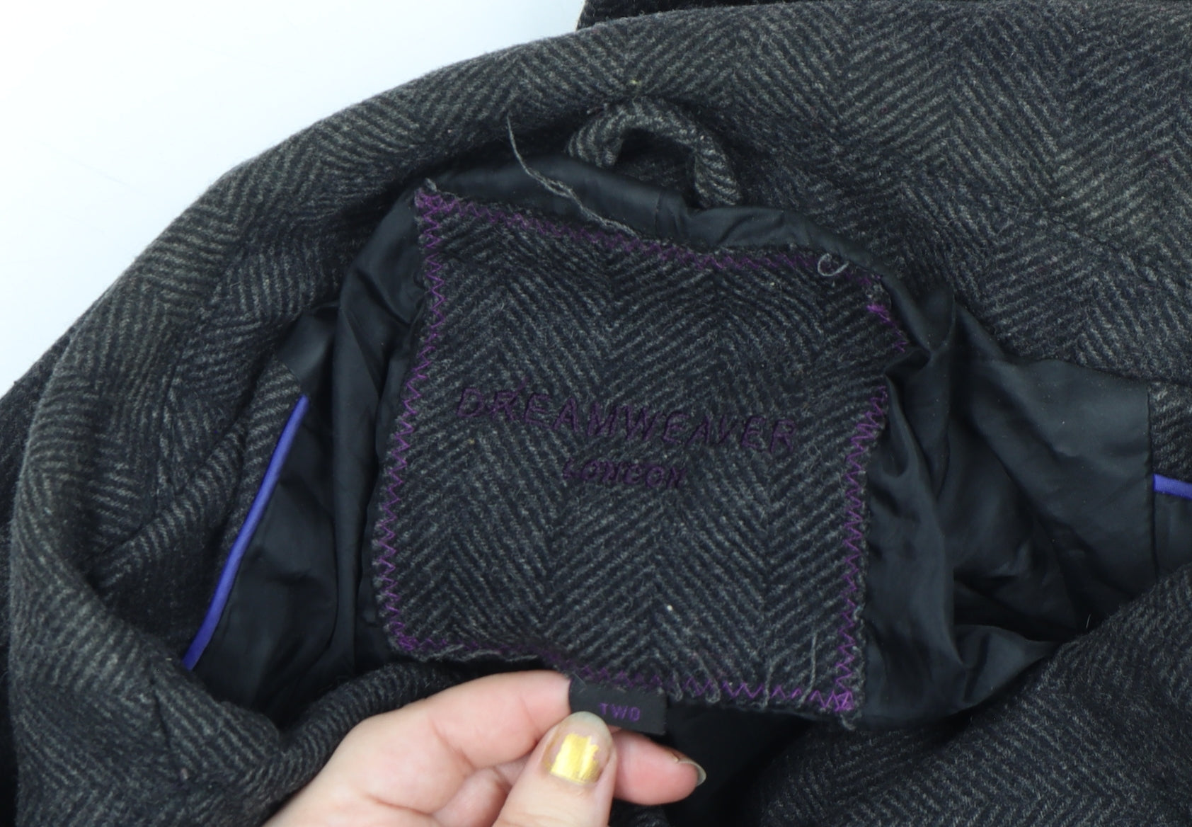 Dreamweaver London Men's Grey Wool Blend Herringbone Pea Coat M