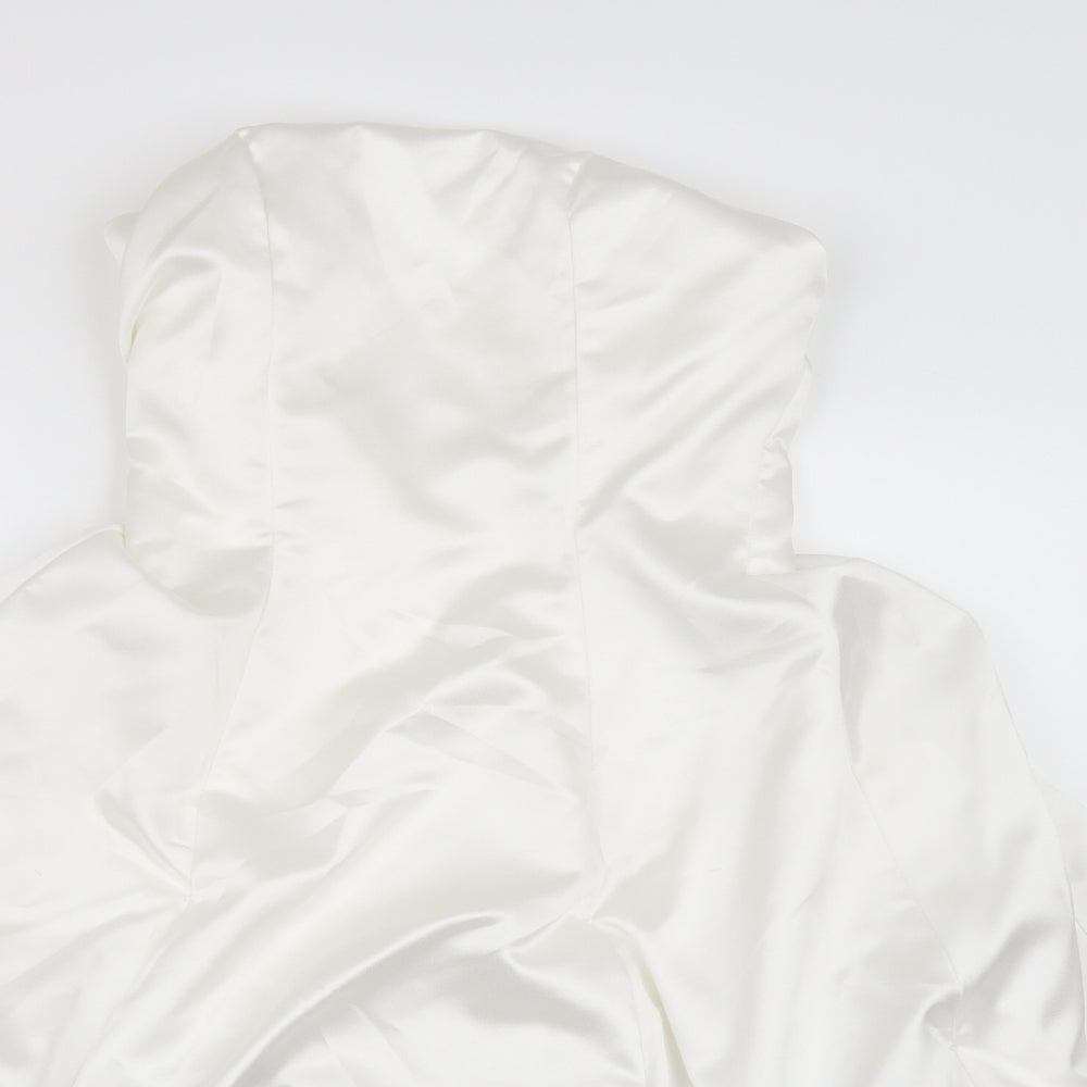 Womens White Satin Ball Gown Size 8 - ruched effect