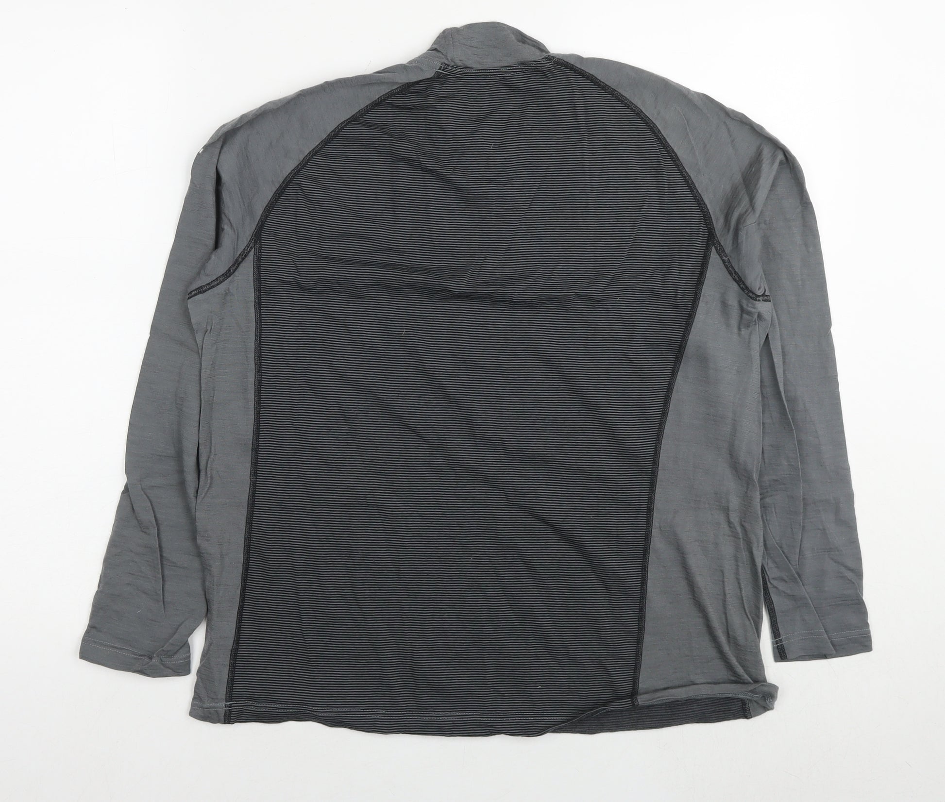 Womens Grey Striped Cotton Basic T-Shirt Size 2XL Round Neck