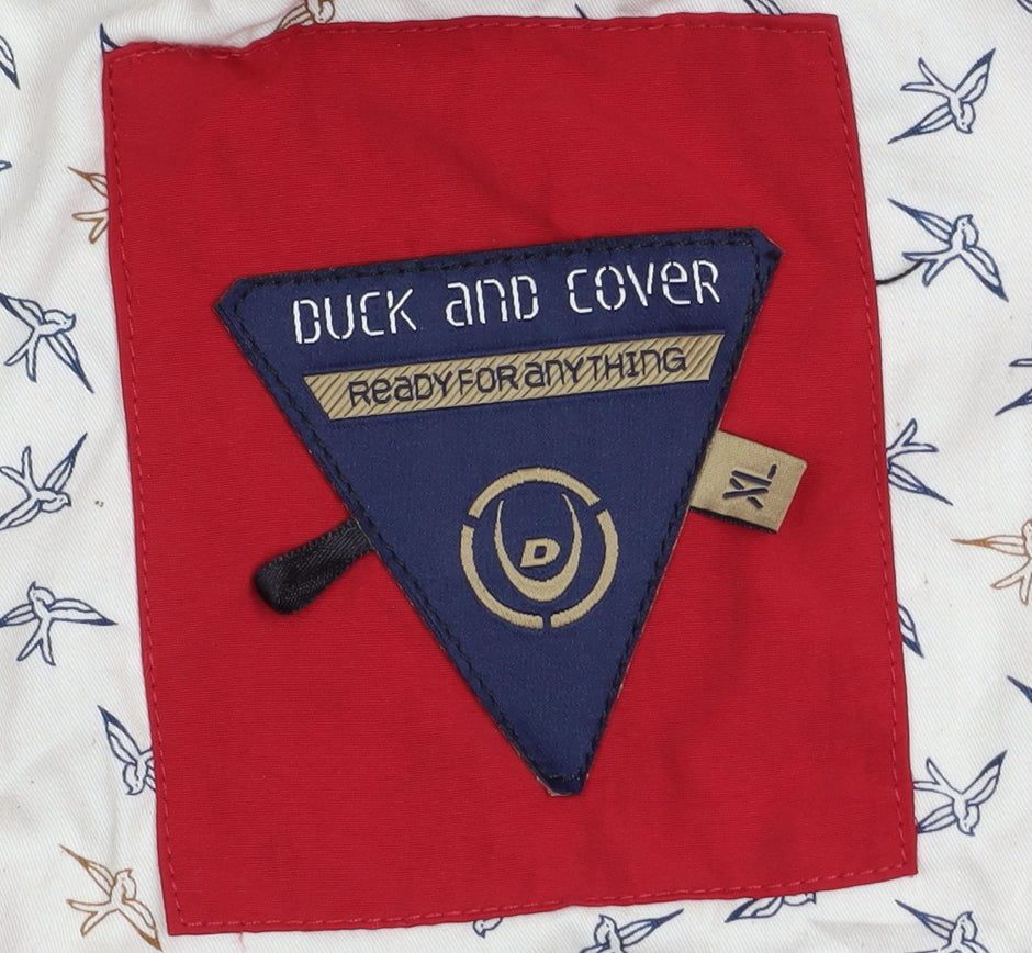 This Duck and Cover men's red hooded windbreaker jacket combines practical outdoor functionality with contemporary urban style. Designed for versatility, it features a lightweight yet durable 100% nylon shell, offering reliable protection from elements during spring and autumn months. The breathable cotton body lining and polyester sleeve lining ensure comfort and ease of movement. With a full front zip closure, adjustable hood, and elasticated hem, this jacket delivers both practicality and fit. Its functional design includes multiple secure pockets—perfect for everyday essentials—and subtle branding on the chest, adding a touch of modern appeal without being overstated. Styled in a bold red colour, it’s ideal for casual outings, walking, or travel, pairing effortlessly with jeans or chinos. The regular fit is flattering yet comfortable, with a short jacket length that suits layering across varied weather conditions. Accented with contrasting zip and button details, the jacket's craftsmanship epitomises Duck and Cover’s signature balance between fashion and utility. Despite minor cosmetic wear, it remains in very good condition with no major flaws affecting wearability. This jacket is perfect for the man seeking dependable style with an edge—whether for day-to-day use or weekend adventures. Machine washable for easy care, it’s built for practicality, comfort and confidence. A must-have wardrobe staple for men who appreciate high-quality casual outerwear at an excellent value. Add this vibrant and functional piece to your collection to elevate everyday looks effortlessly.