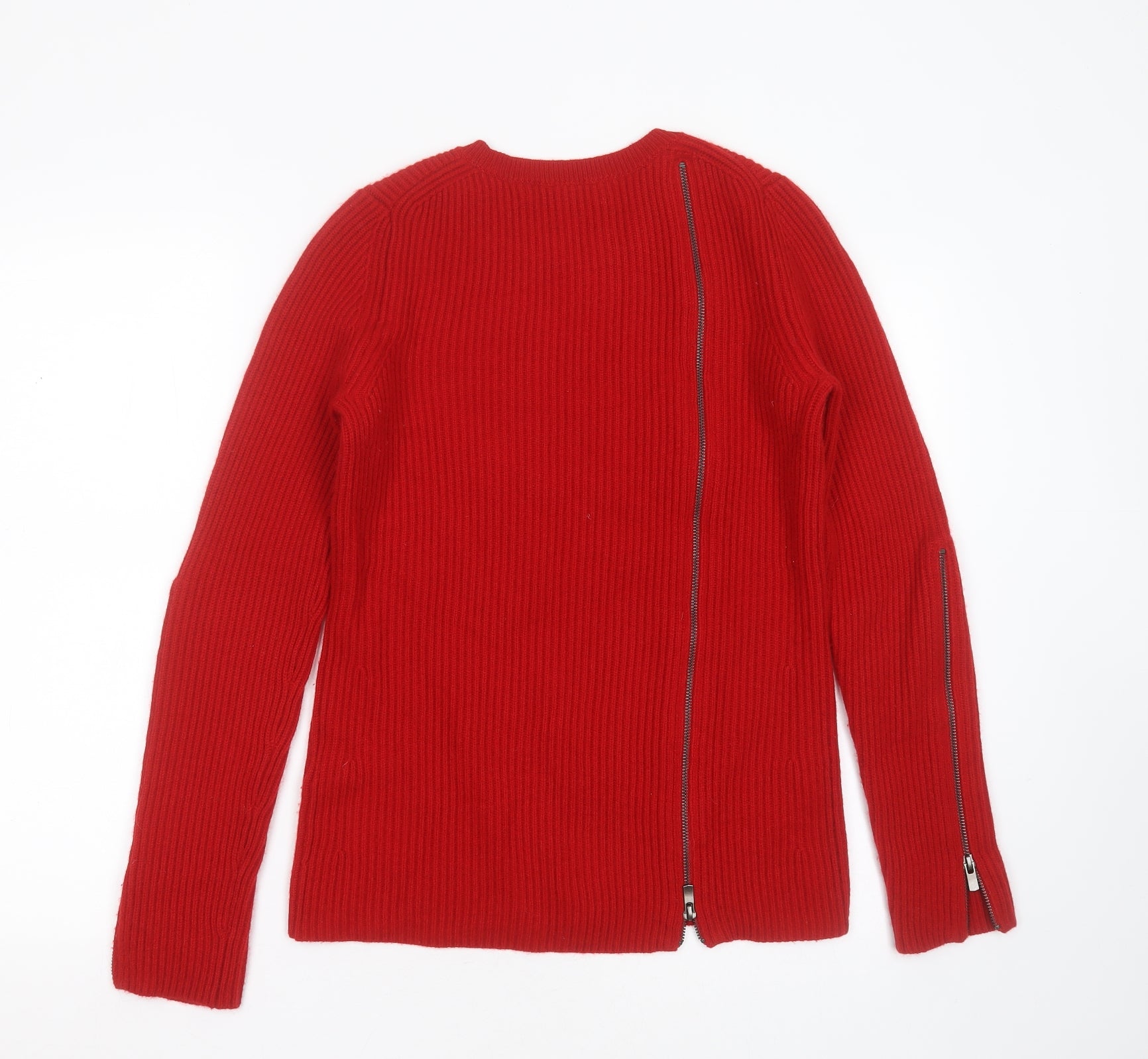 Womens Red Round Neck Cashmere Pullover Jumper Size S